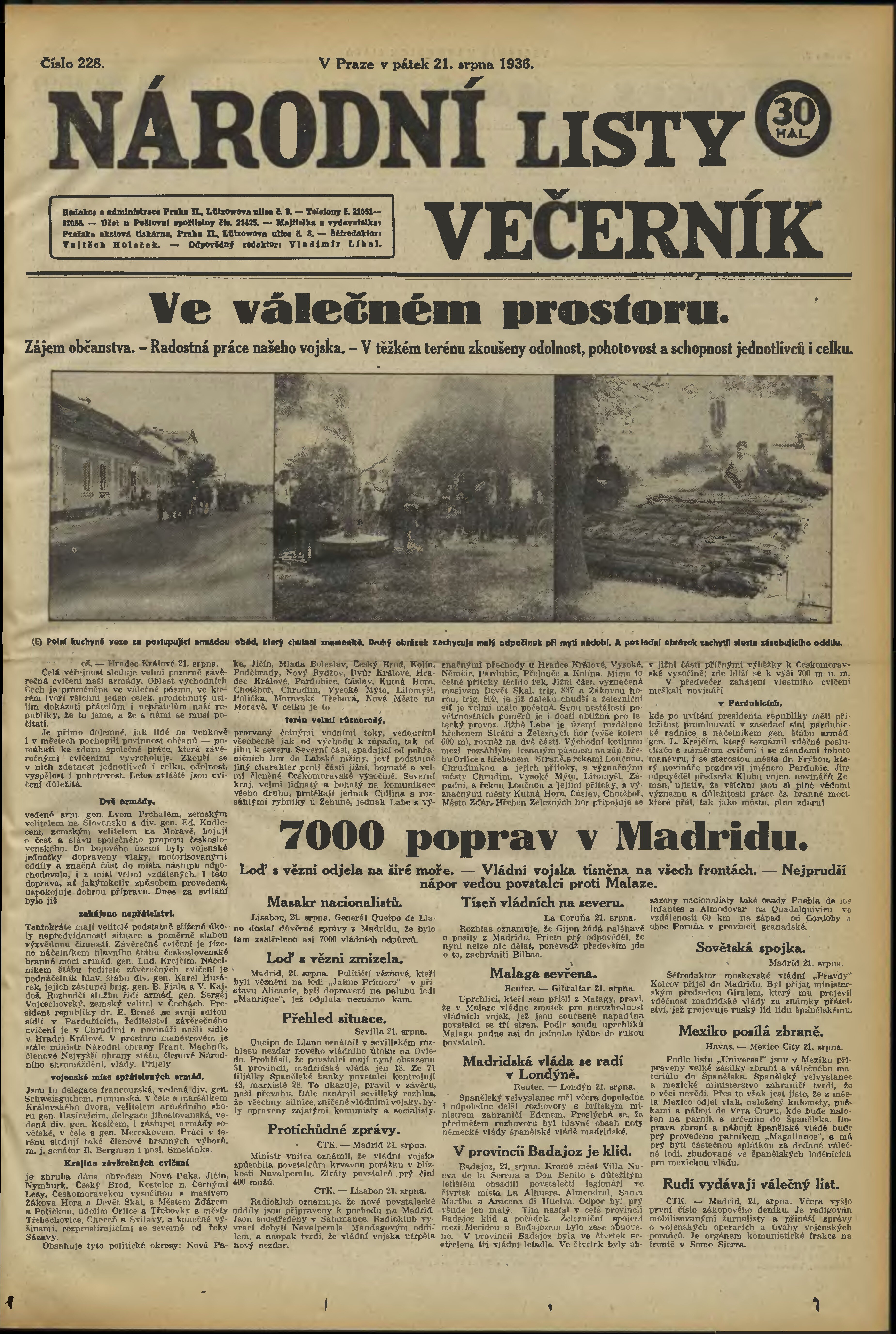 * Datum vydání výtisku: 21.8.1936 Číslo výtisku: 228 Poznámky k výtisku: večerní vydání;