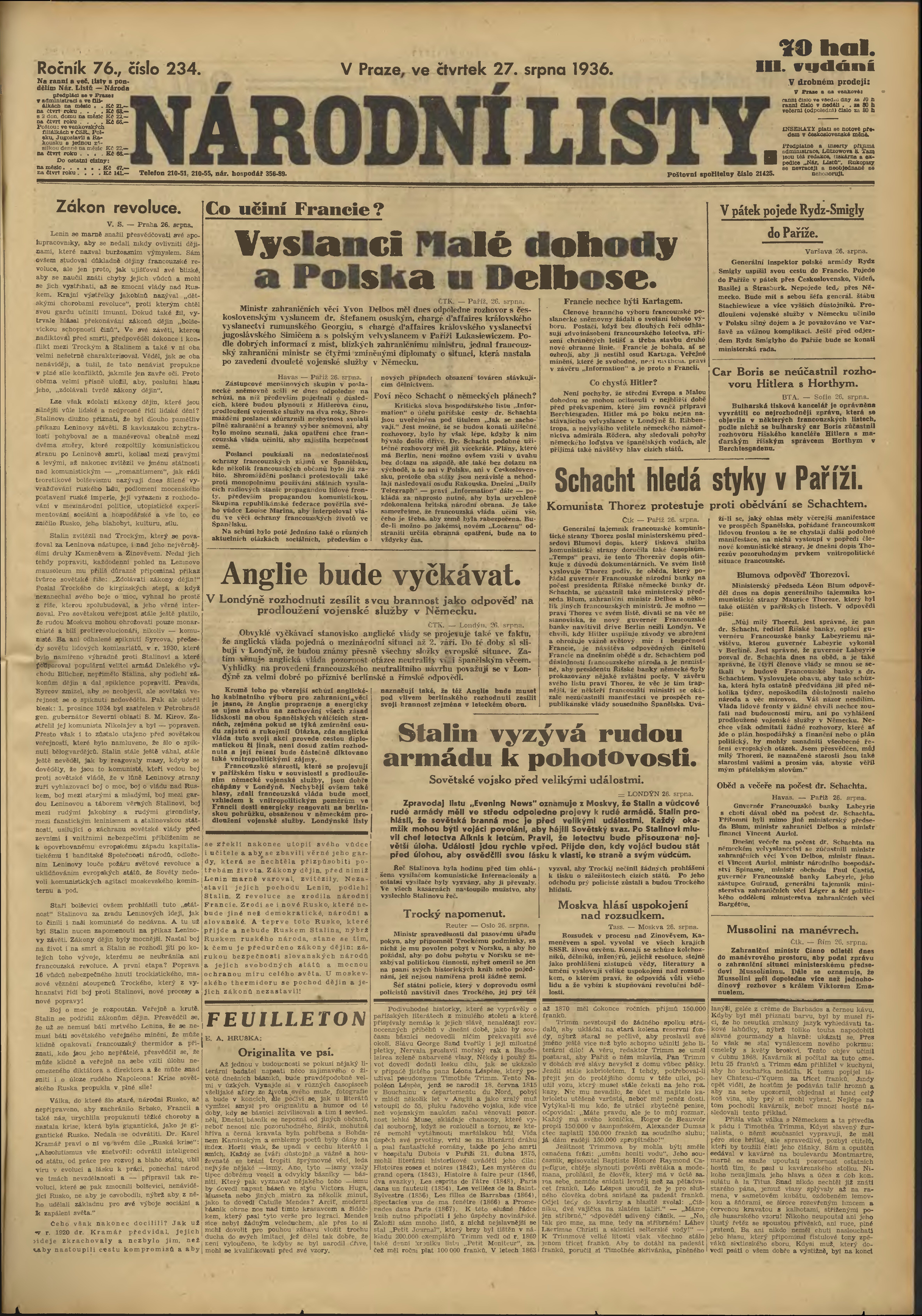 * Datum vydání výtisku: 27.8.1936 Číslo výtisku: 234 Poznámky k výtisku: 3. vydání;
