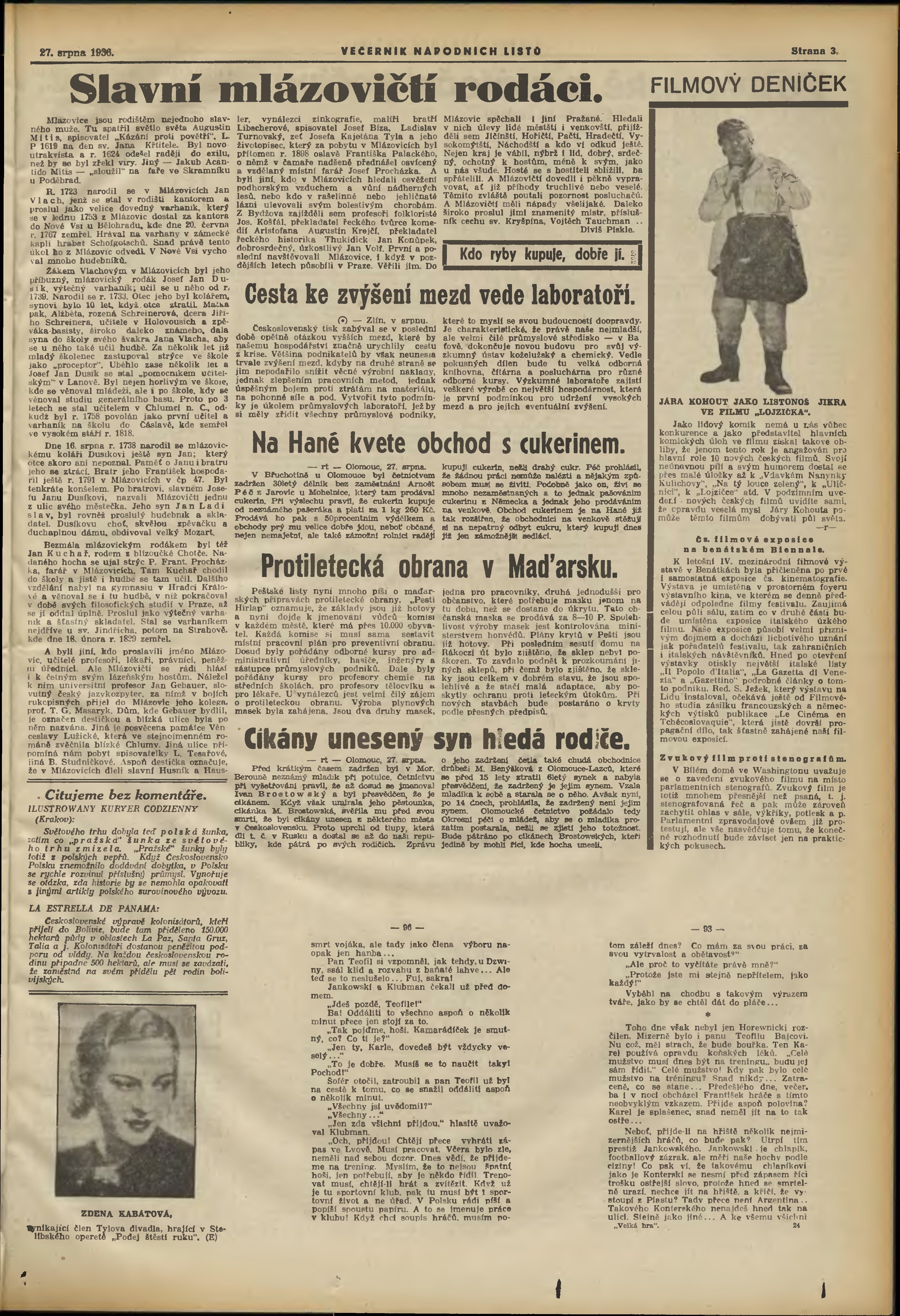 * Datum vydání výtisku: 27.8.1936 Číslo výtisku: 234 Poznámky k výtisku: večerní vydání;