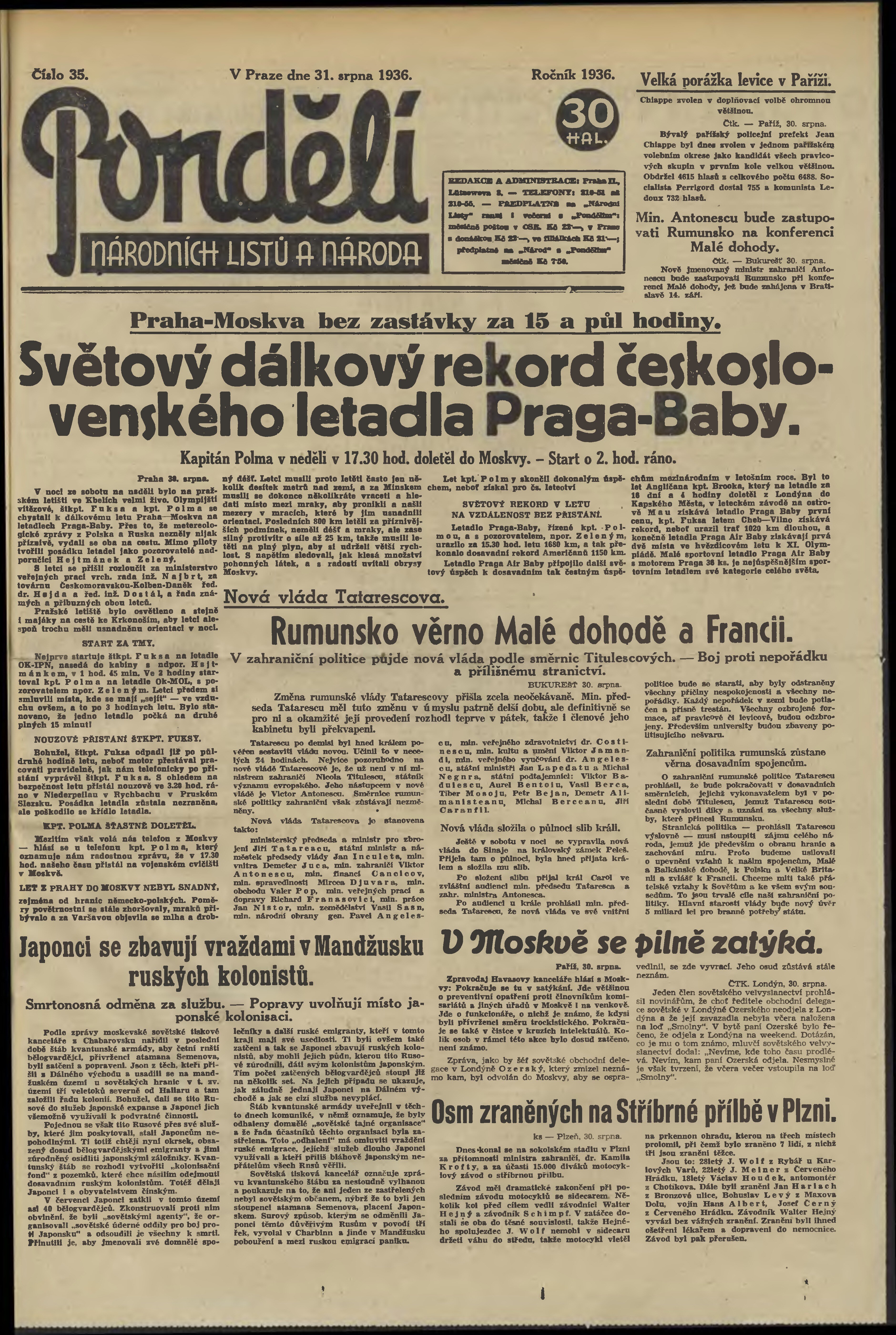 * Datum vydání výtisku: 31.8.1936 Číslo výtisku: 35