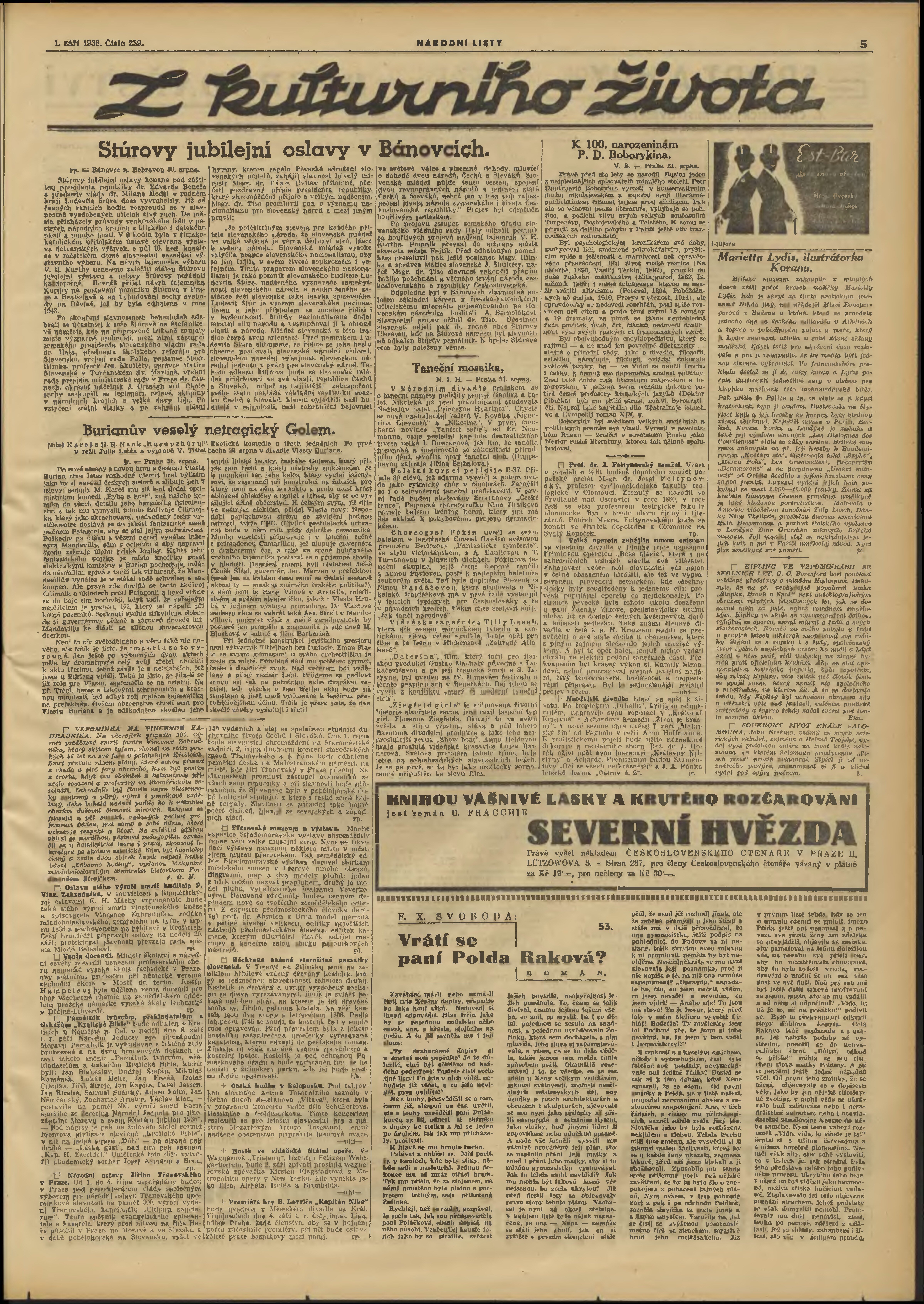 * Datum vydání výtisku: 1.9.1936 Číslo výtisku: 239 Poznámky k výtisku: 3. vydání;