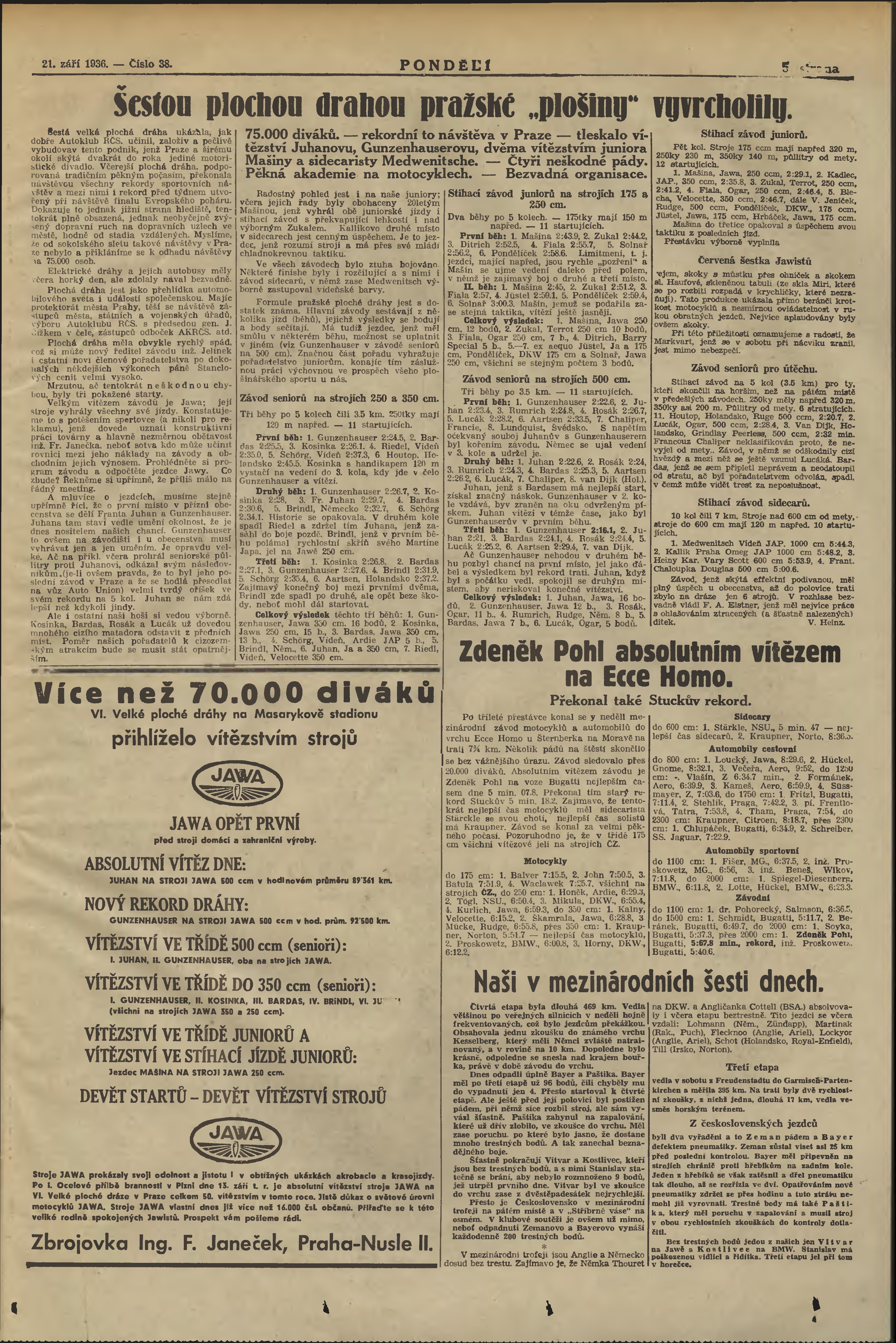 * Datum vydání výtisku: 21.9.1936 Číslo výtisku: 38