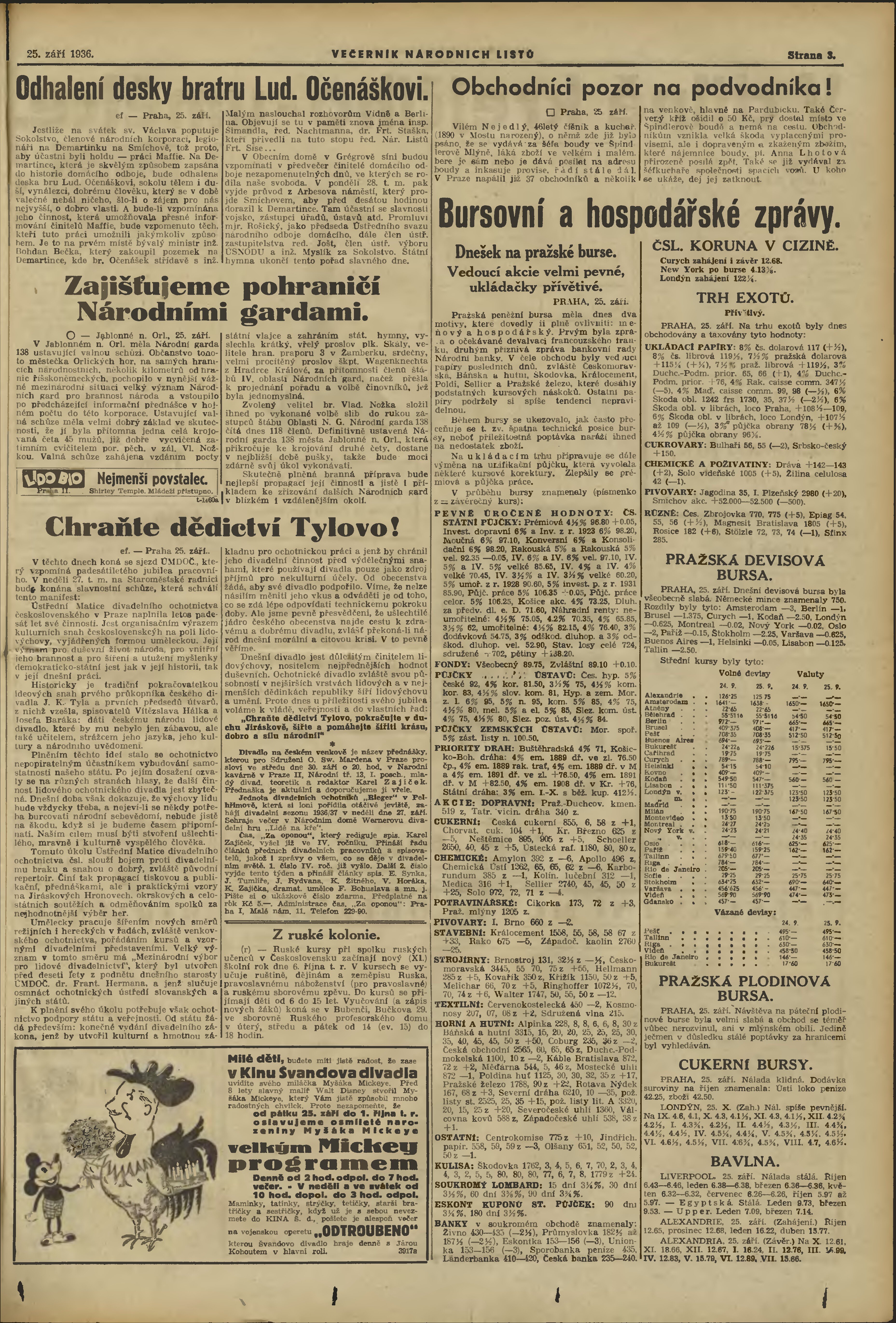 * Datum vydání výtisku: 25.9.1936 Číslo výtisku: 263 Poznámky k výtisku: večerní vydání;
