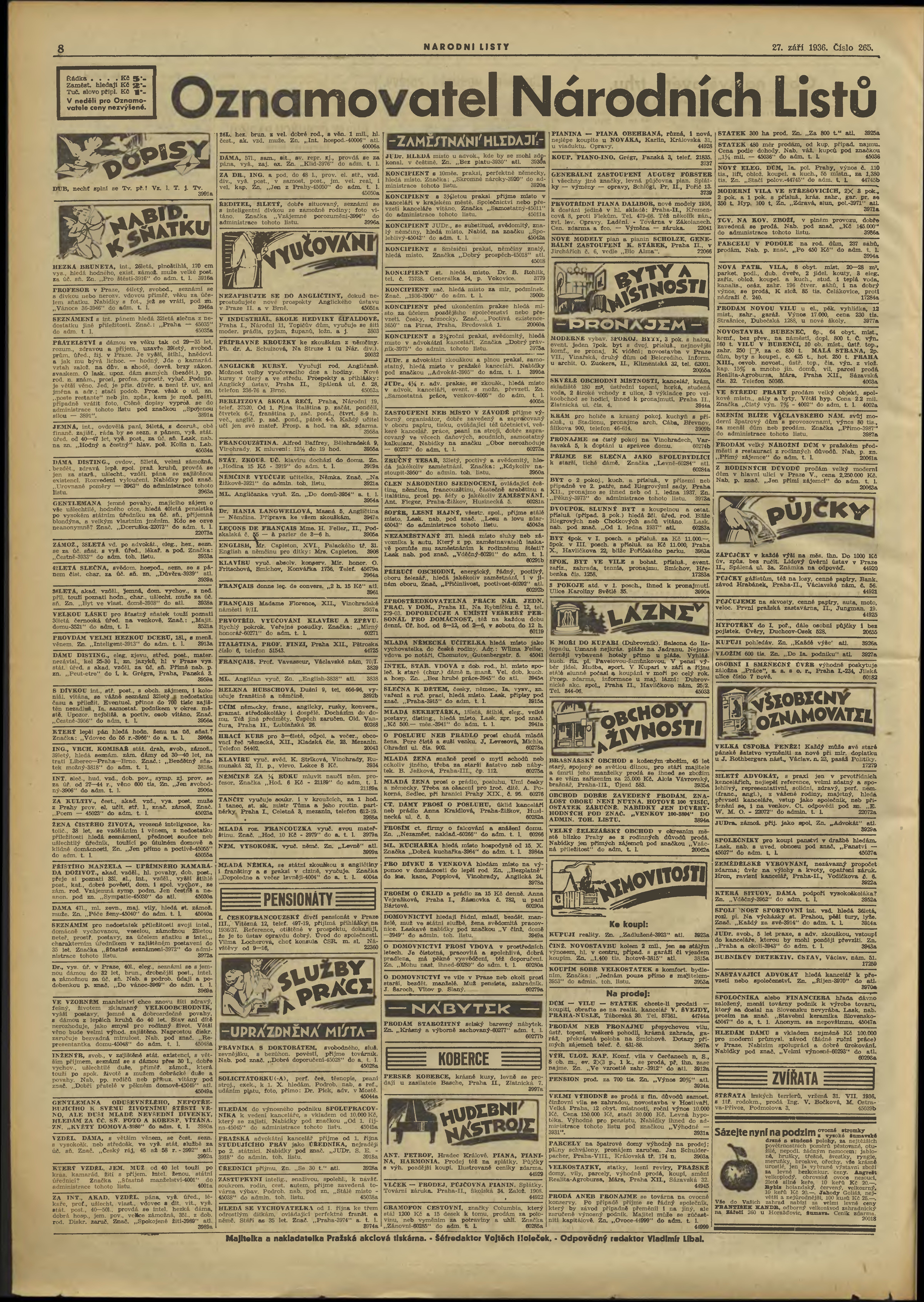 * Datum vydání výtisku: 27.9.1936 Číslo výtisku: 265 Poznámky k výtisku: 3. vydání;