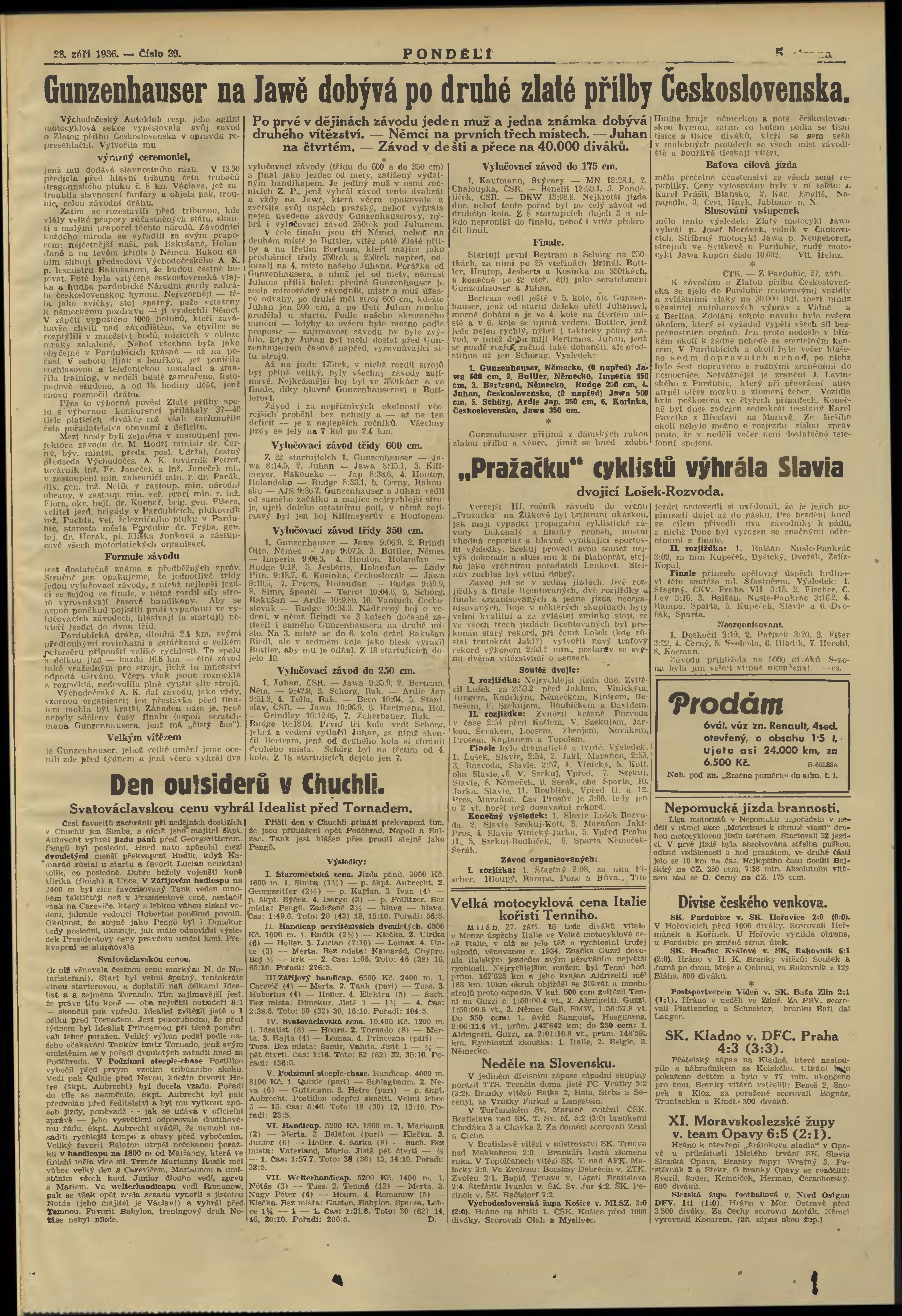 * Datum vydání výtisku: 28.9.1936 Číslo výtisku: 39