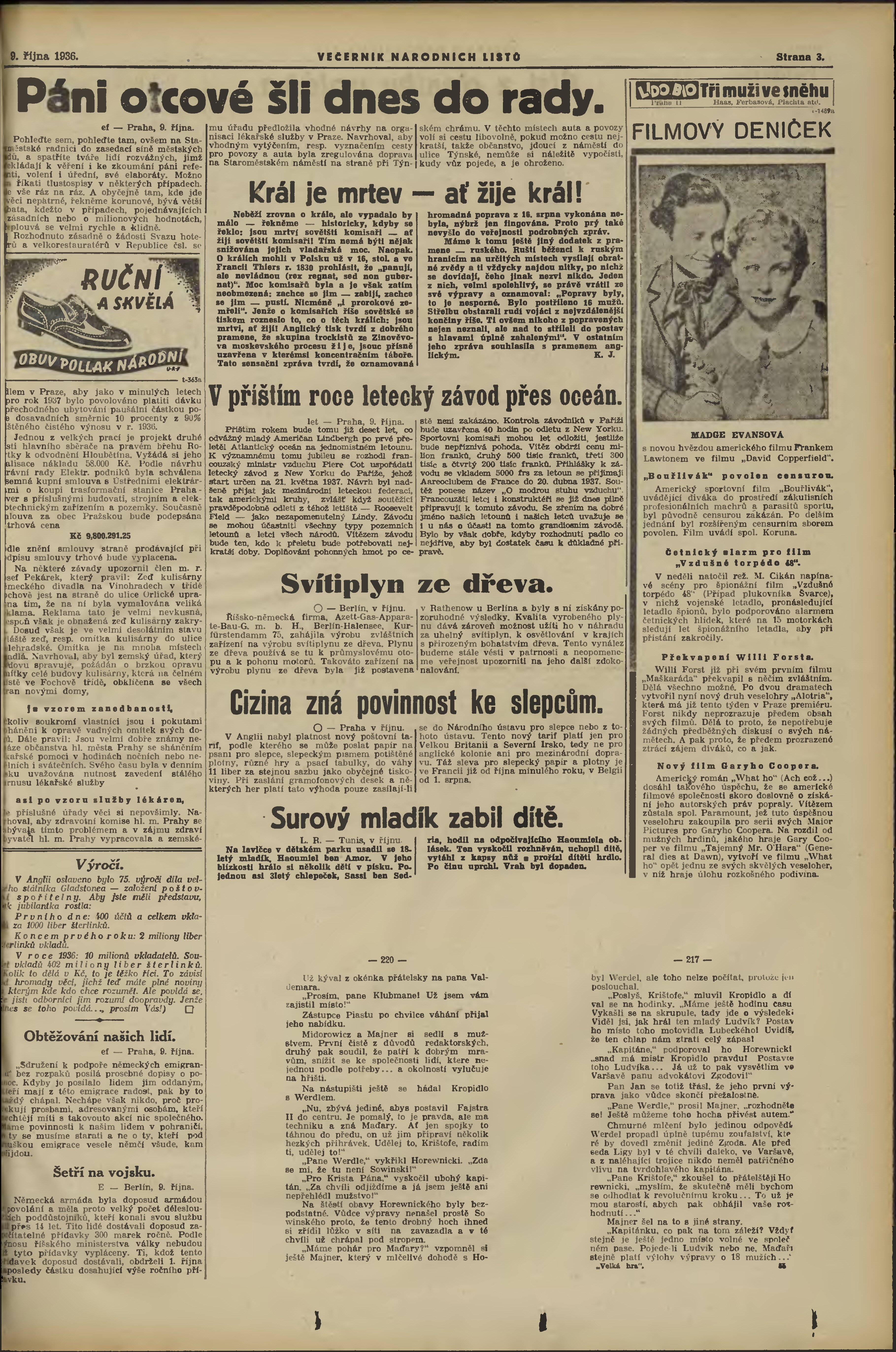 * Datum vydání výtisku: 9.10.1936 Číslo výtisku: 276 Poznámky k výtisku: večerní vydání;