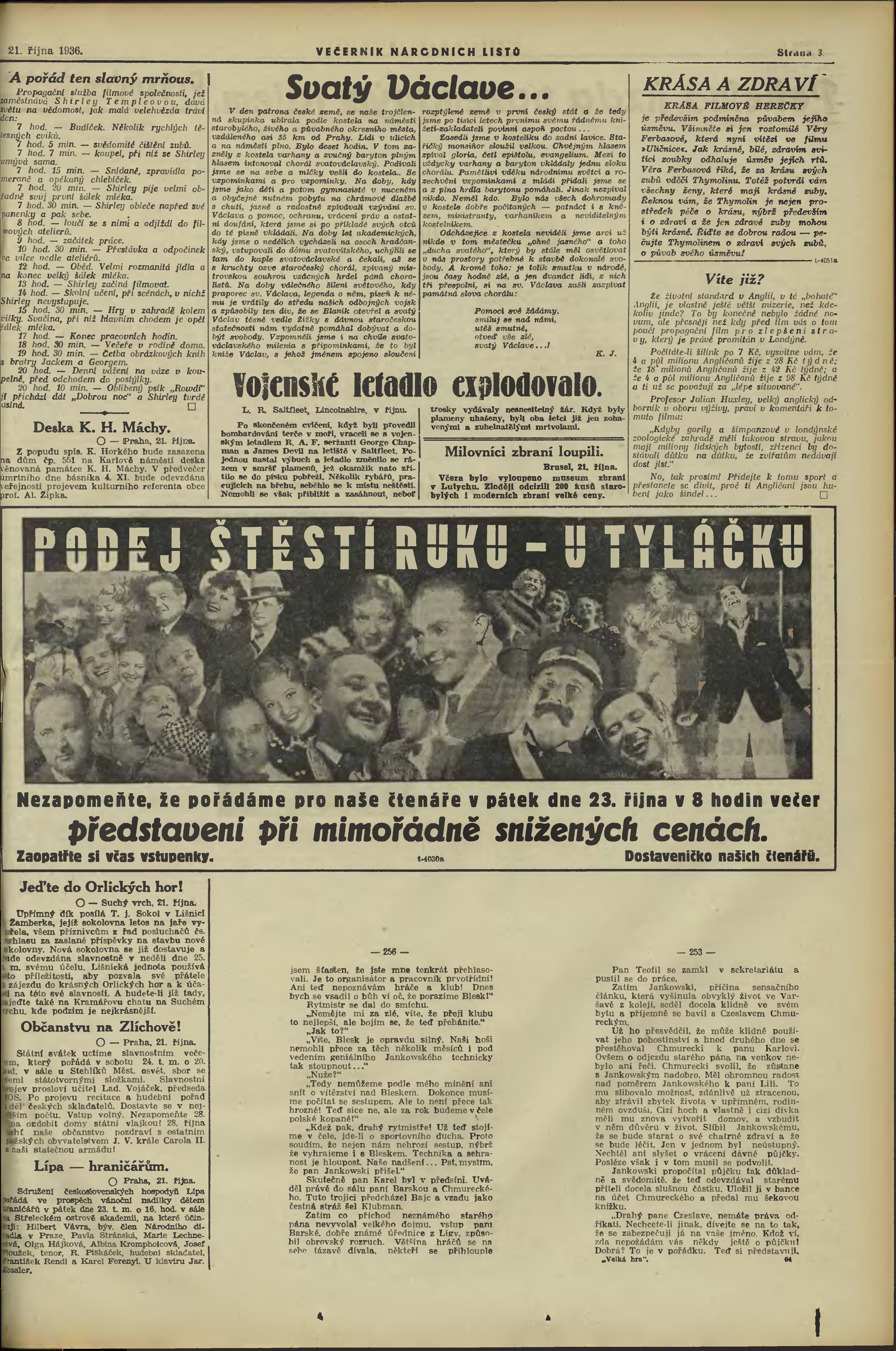* Datum vydání výtisku: 21.10.1936 Číslo výtisku: 288 Poznámky k výtisku: večerní vydání;