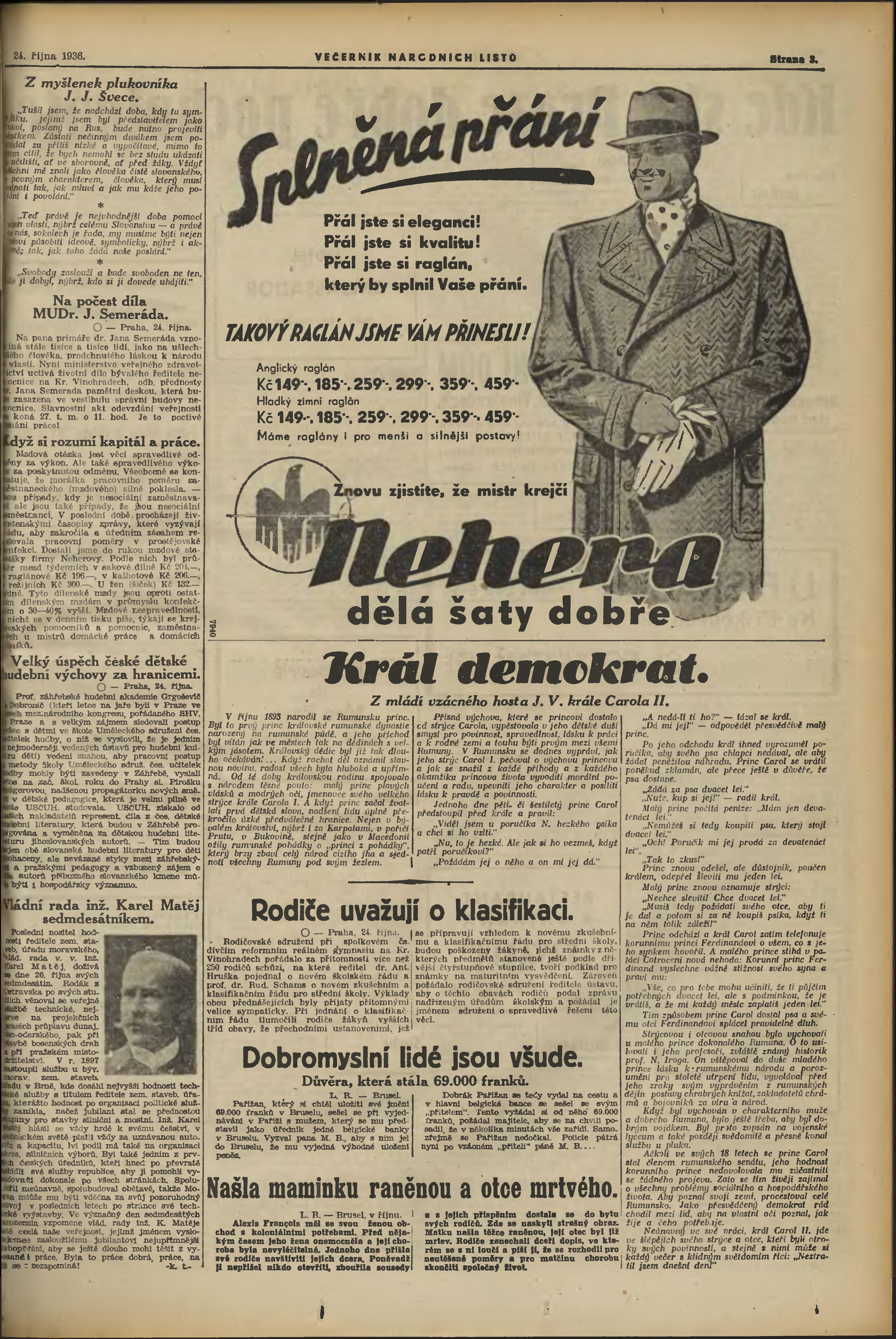 * Datum vydání výtisku: 24.10.1936 Číslo výtisku: 291 Poznámky k výtisku: večerní vydání;