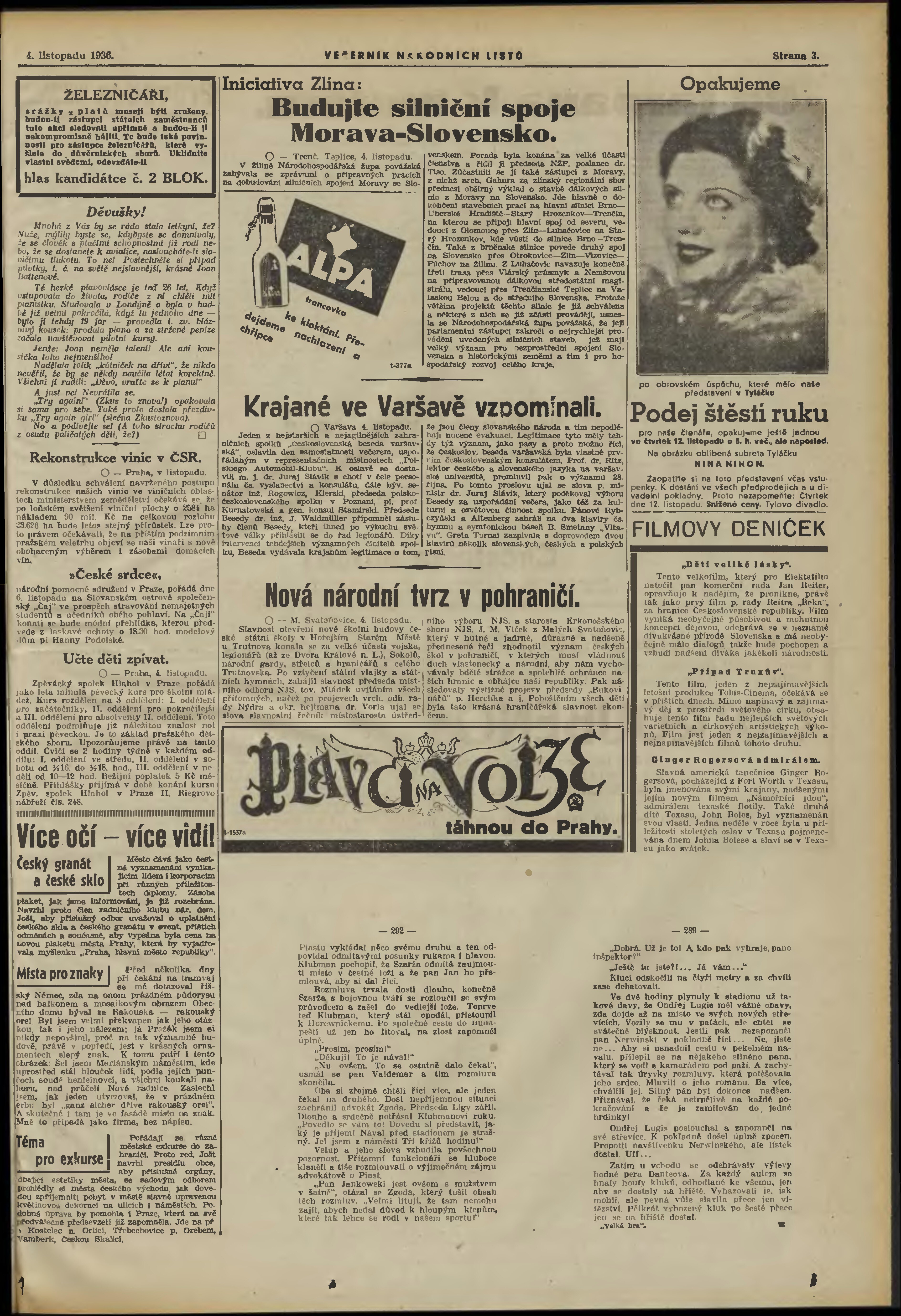 * Datum vydání výtisku: 4.11.1936 Číslo výtisku: 302 Poznámky k výtisku: večerní vydání;