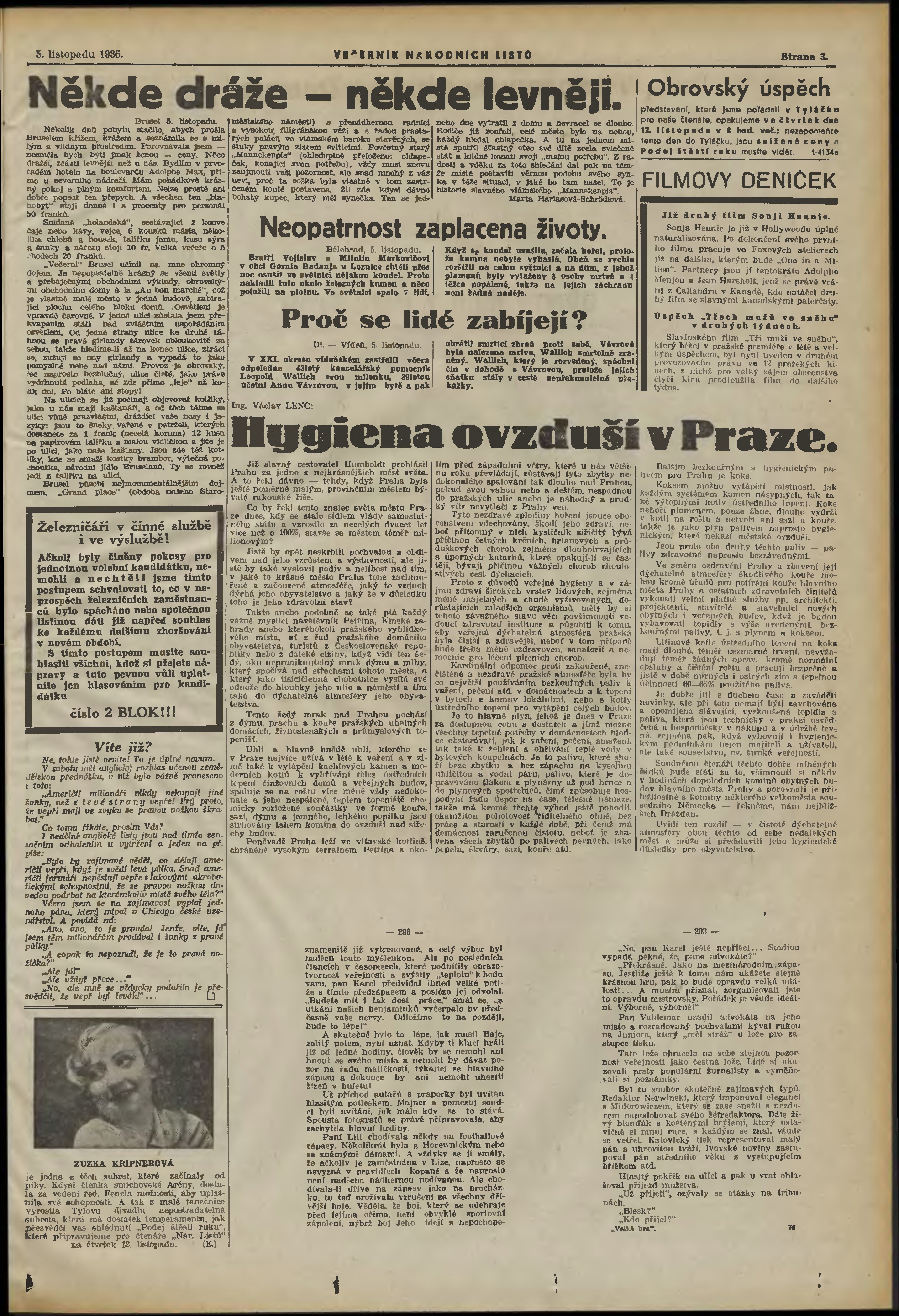* Datum vydání výtisku: 5.11.1936 Číslo výtisku: 303 Poznámky k výtisku: večerní vydání;