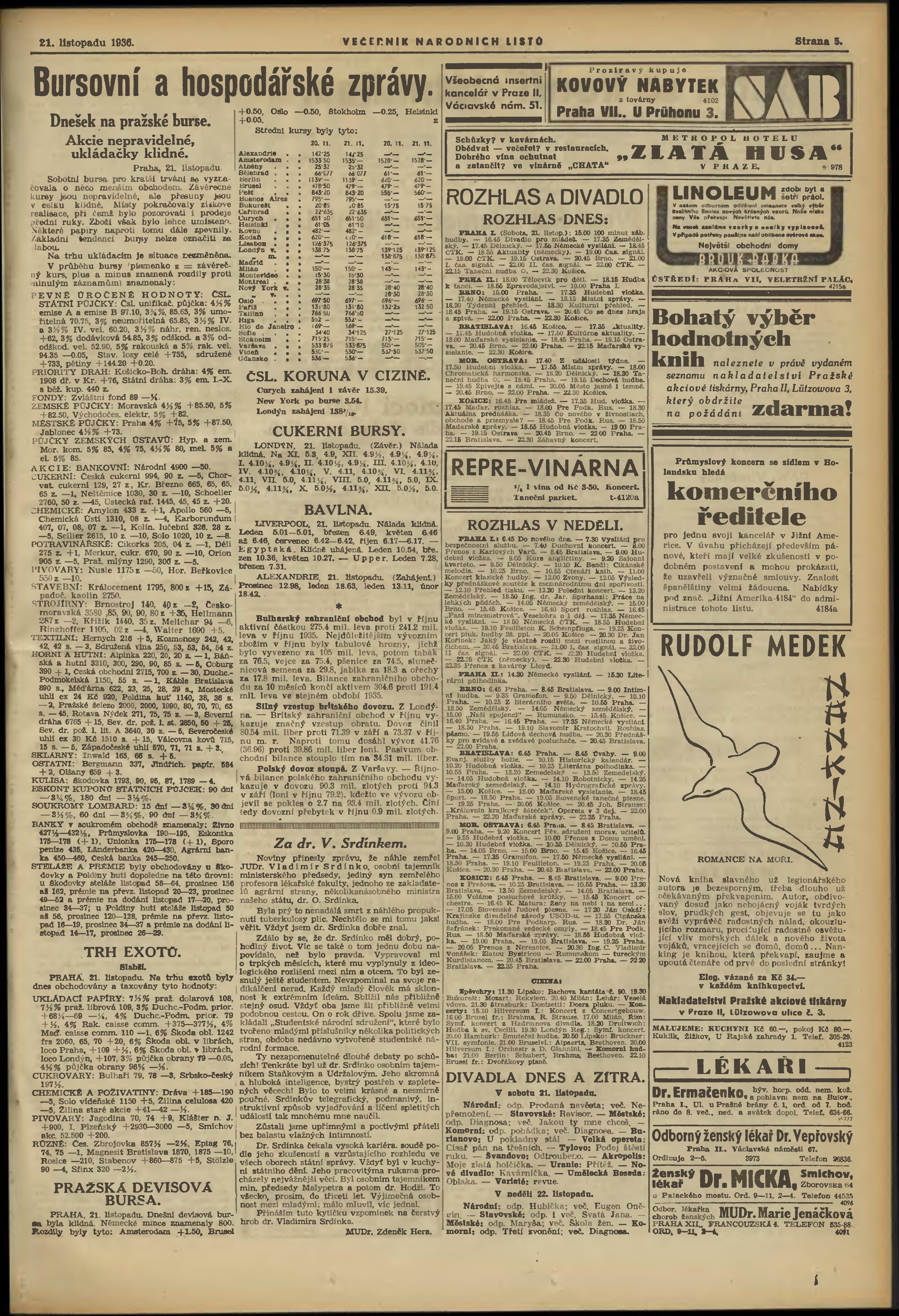 * Datum vydání výtisku: 21.11.1936 Číslo výtisku: 319 Poznámky k výtisku: večerní vydání;
