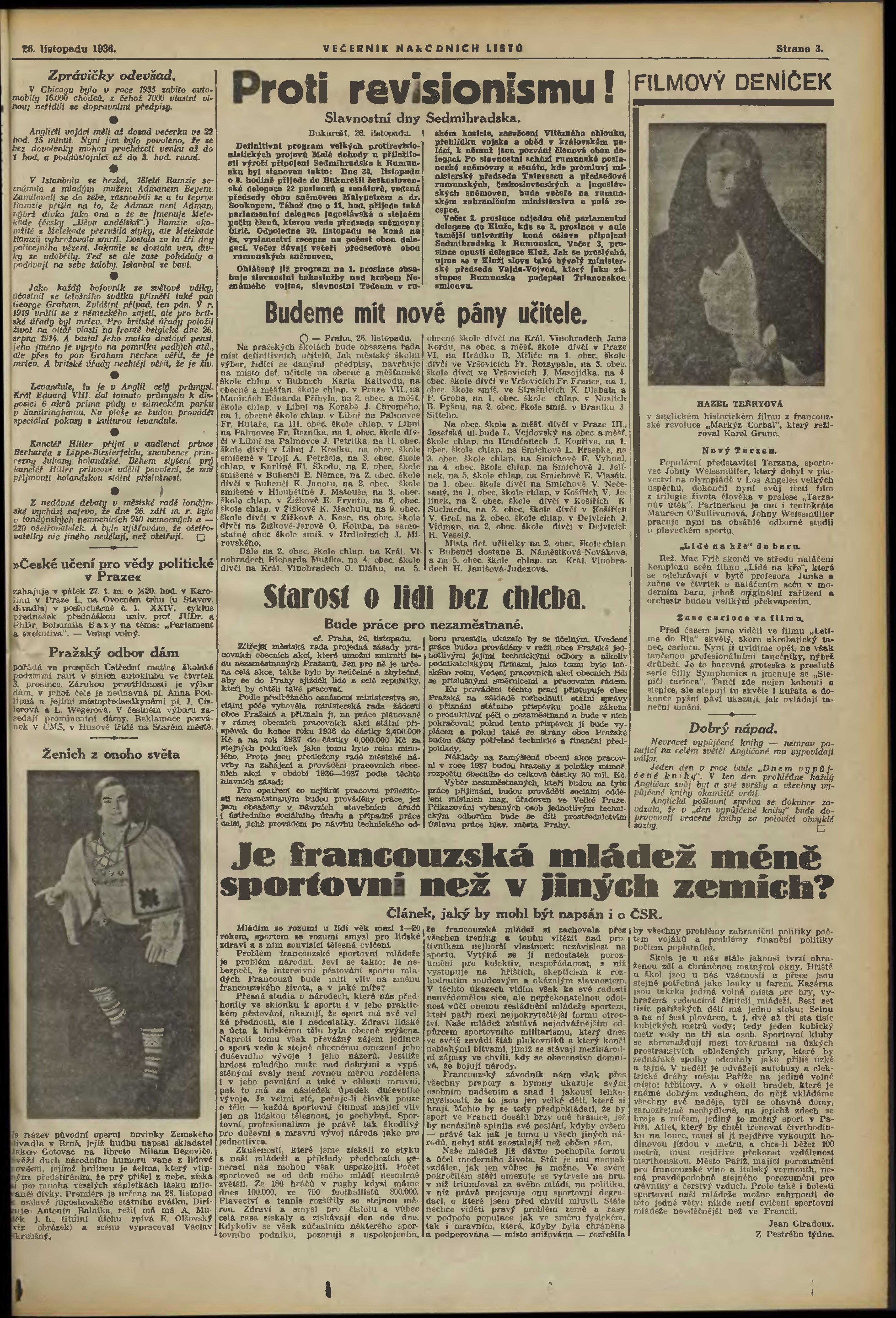 * Datum vydání výtisku: 26.11.1936 Číslo výtisku: 324 Poznámky k výtisku: večerní vydání;