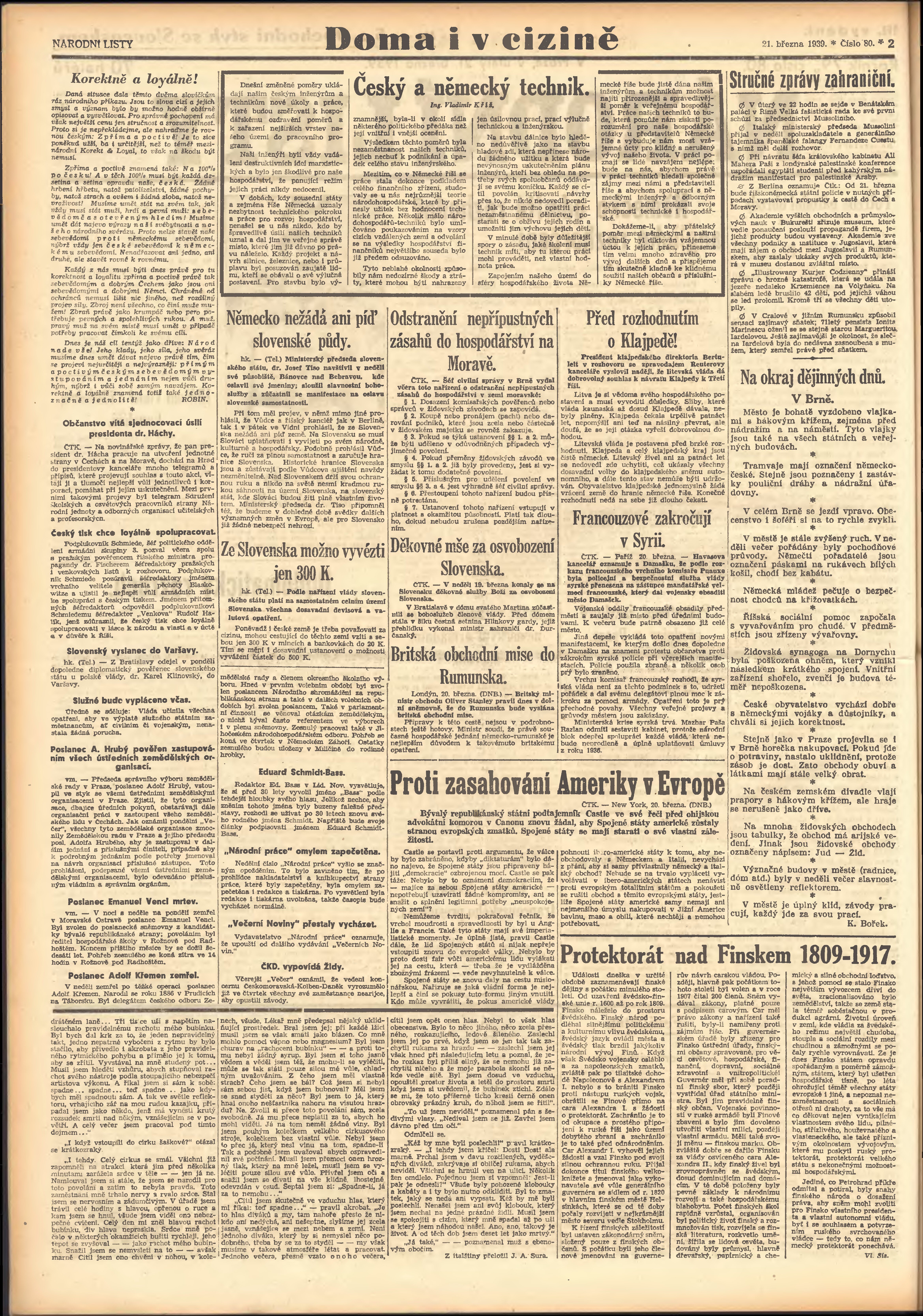* Datum vydání výtisku: 21.3.1939 Číslo výtisku: 80 Poznámky k výtisku: 3. vydání;