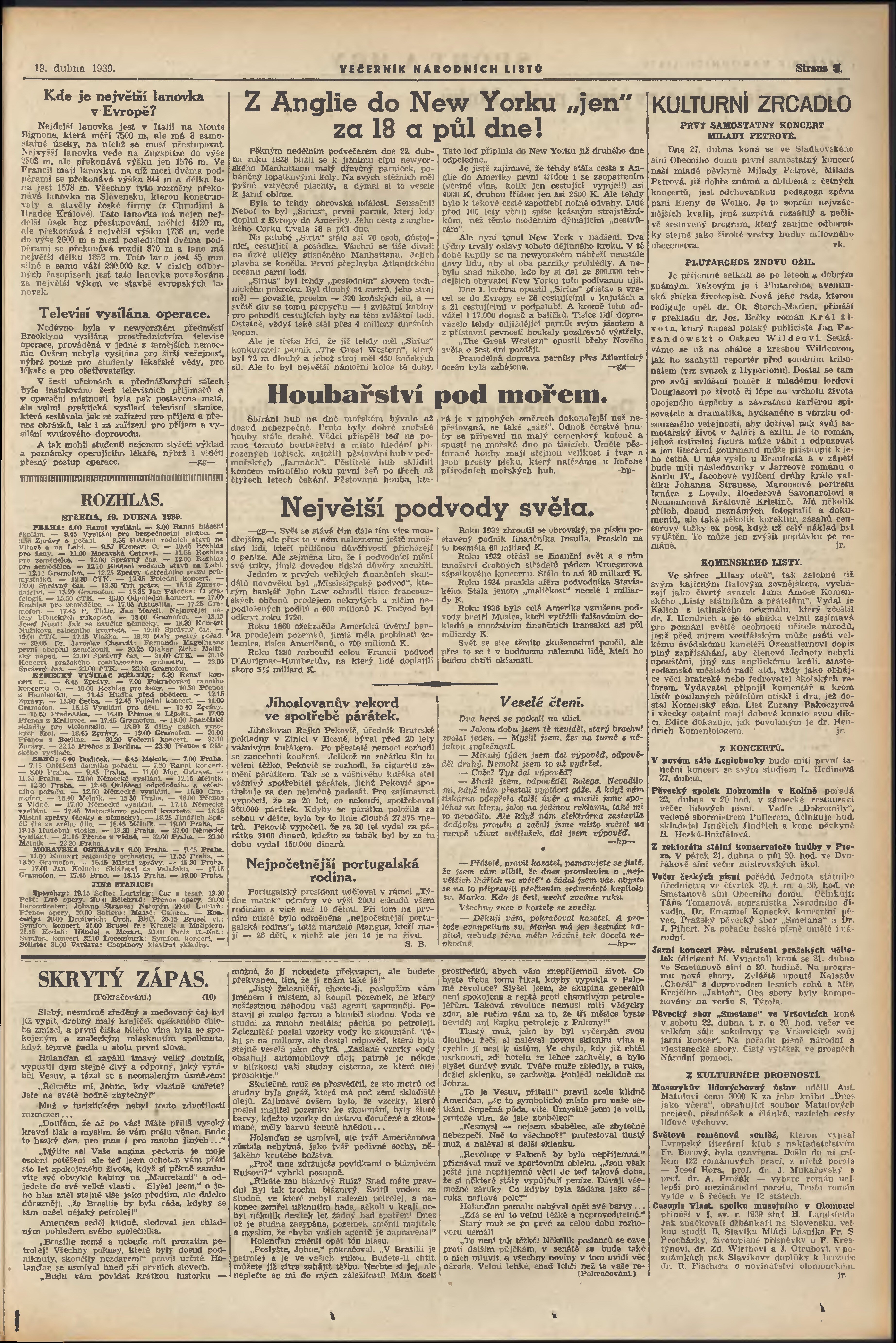 * Datum vydání výtisku: 19.4.1939 Číslo výtisku: 108 Poznámky k výtisku: večerní vydání; 1. vydání;