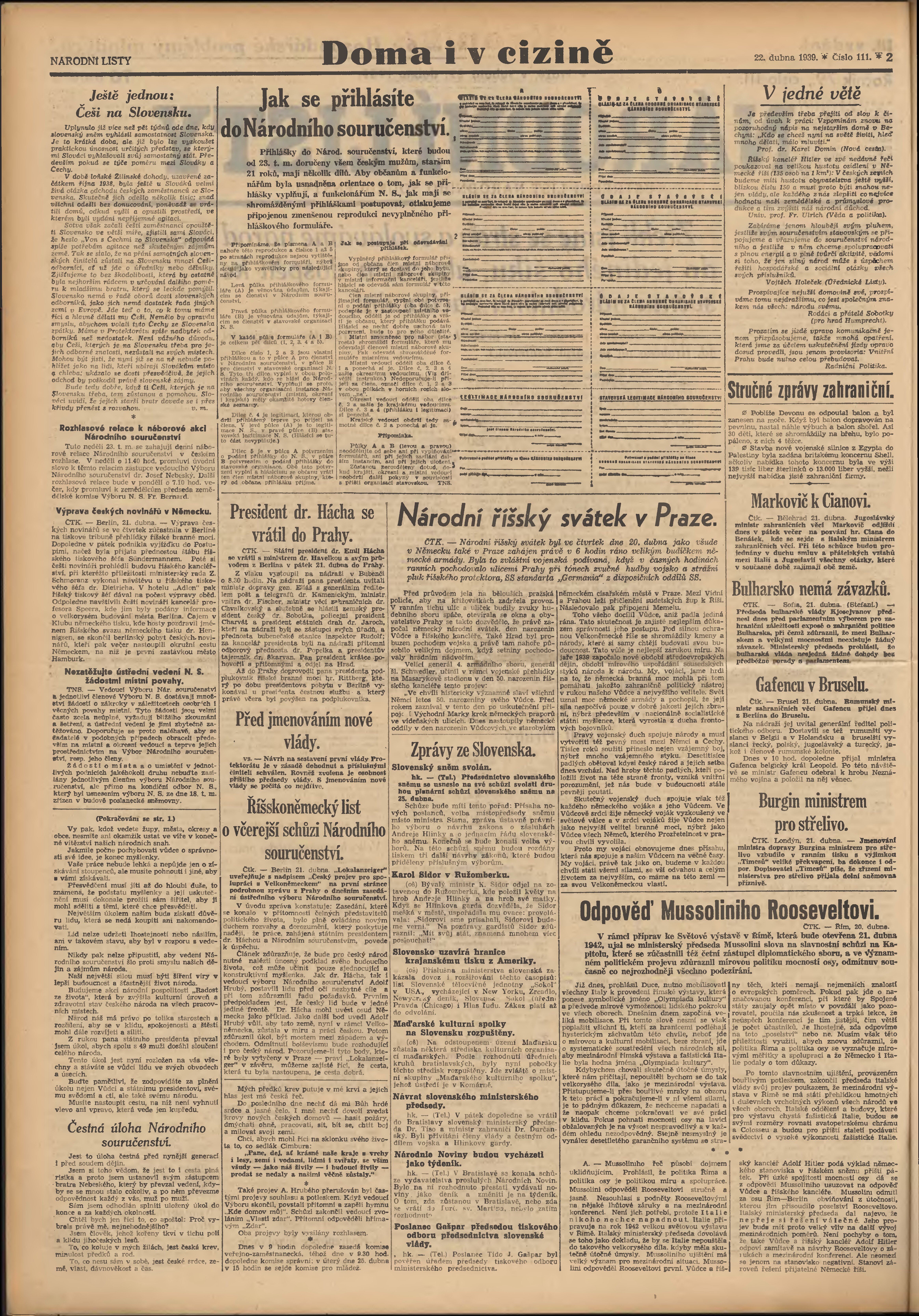 * Datum vydání výtisku: 22.4.1939 Číslo výtisku: 111 Poznámky k výtisku: 3. vydání;