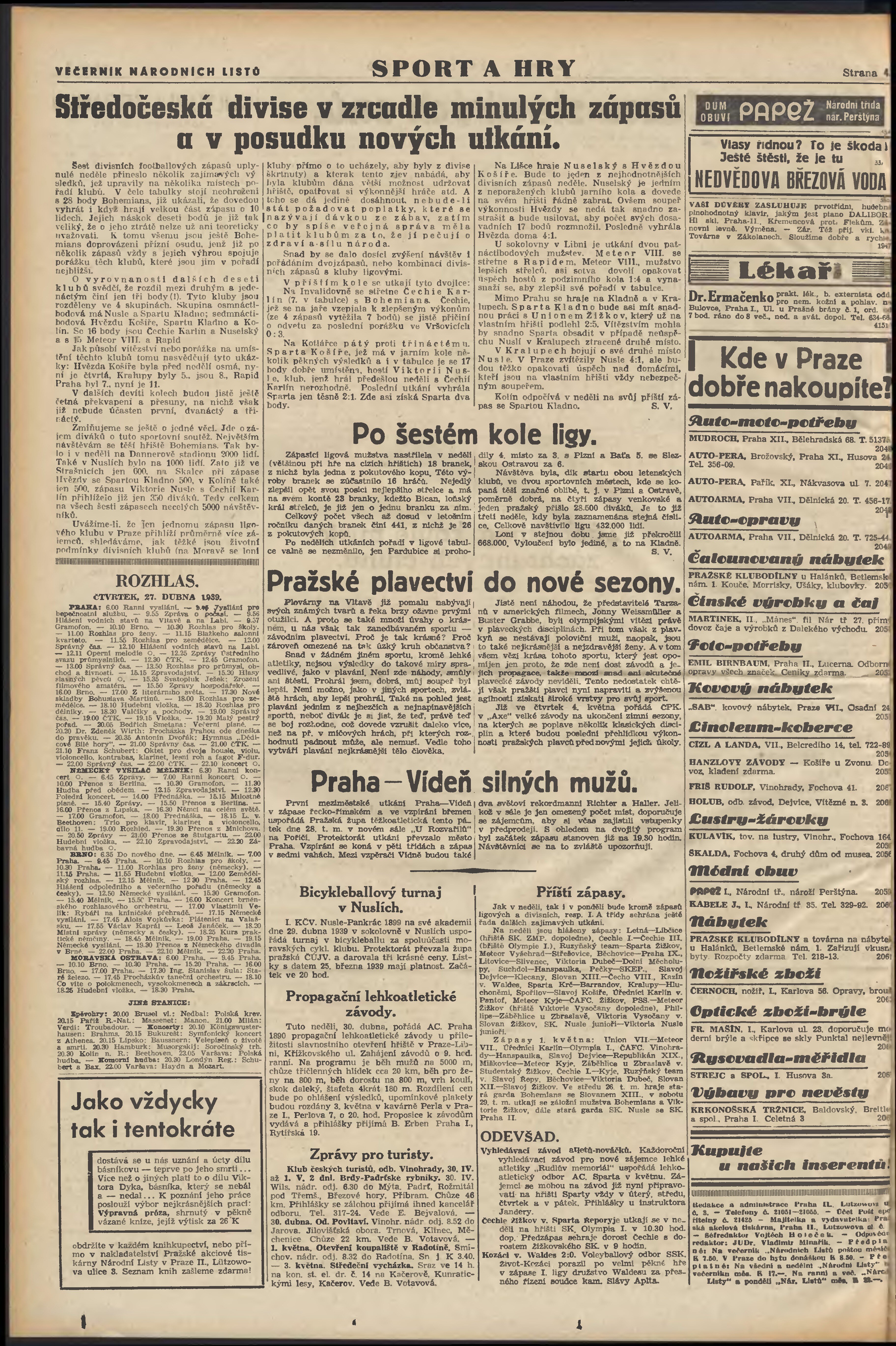 * Datum vydání výtisku: 26.4.1939 Číslo výtisku: 115 Poznámky k výtisku: večerní vydání; 2. vydání;