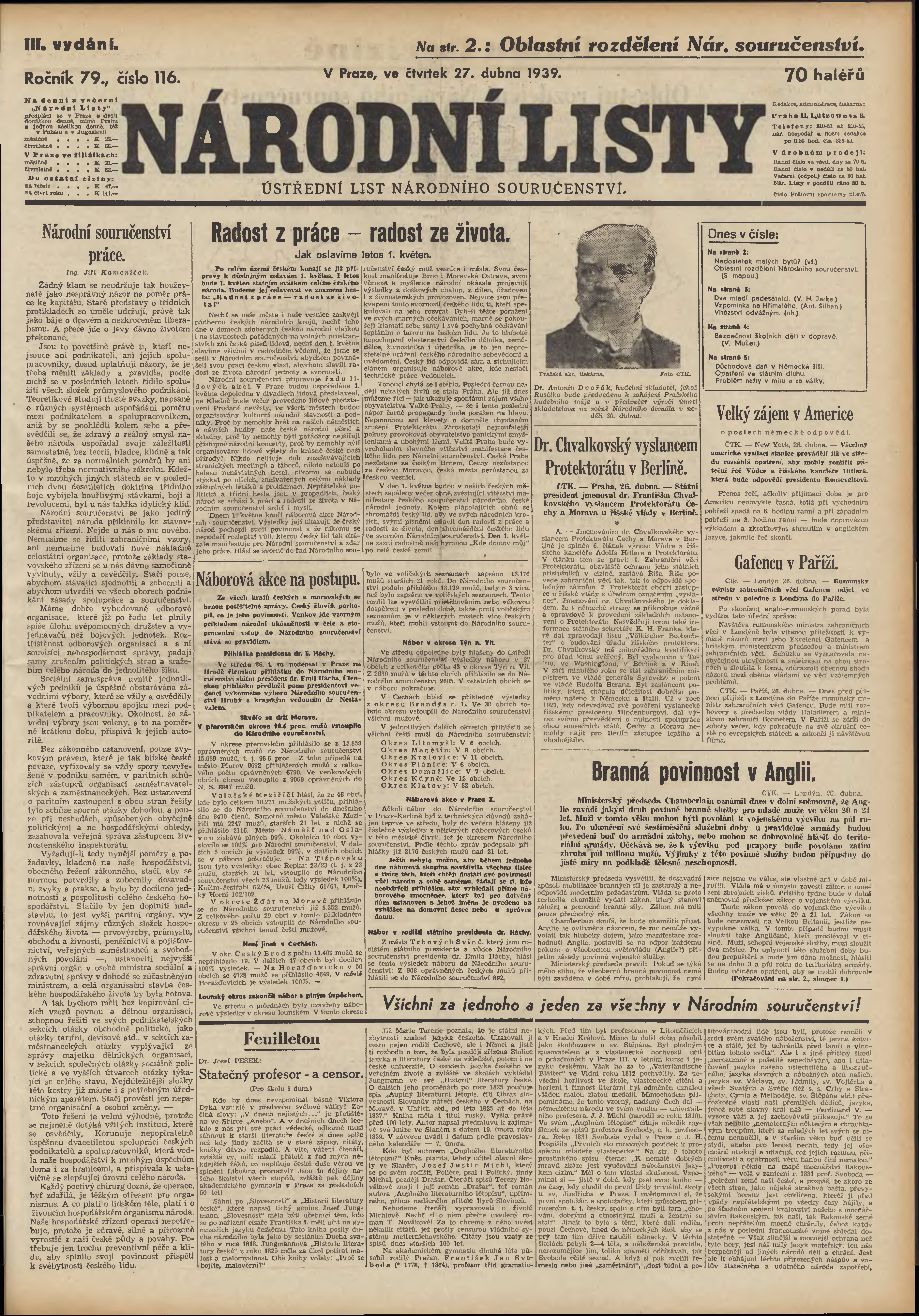 * Datum vydání výtisku: 27.4.1939 Číslo výtisku: 116 Poznámky k výtisku: 3. vydání;