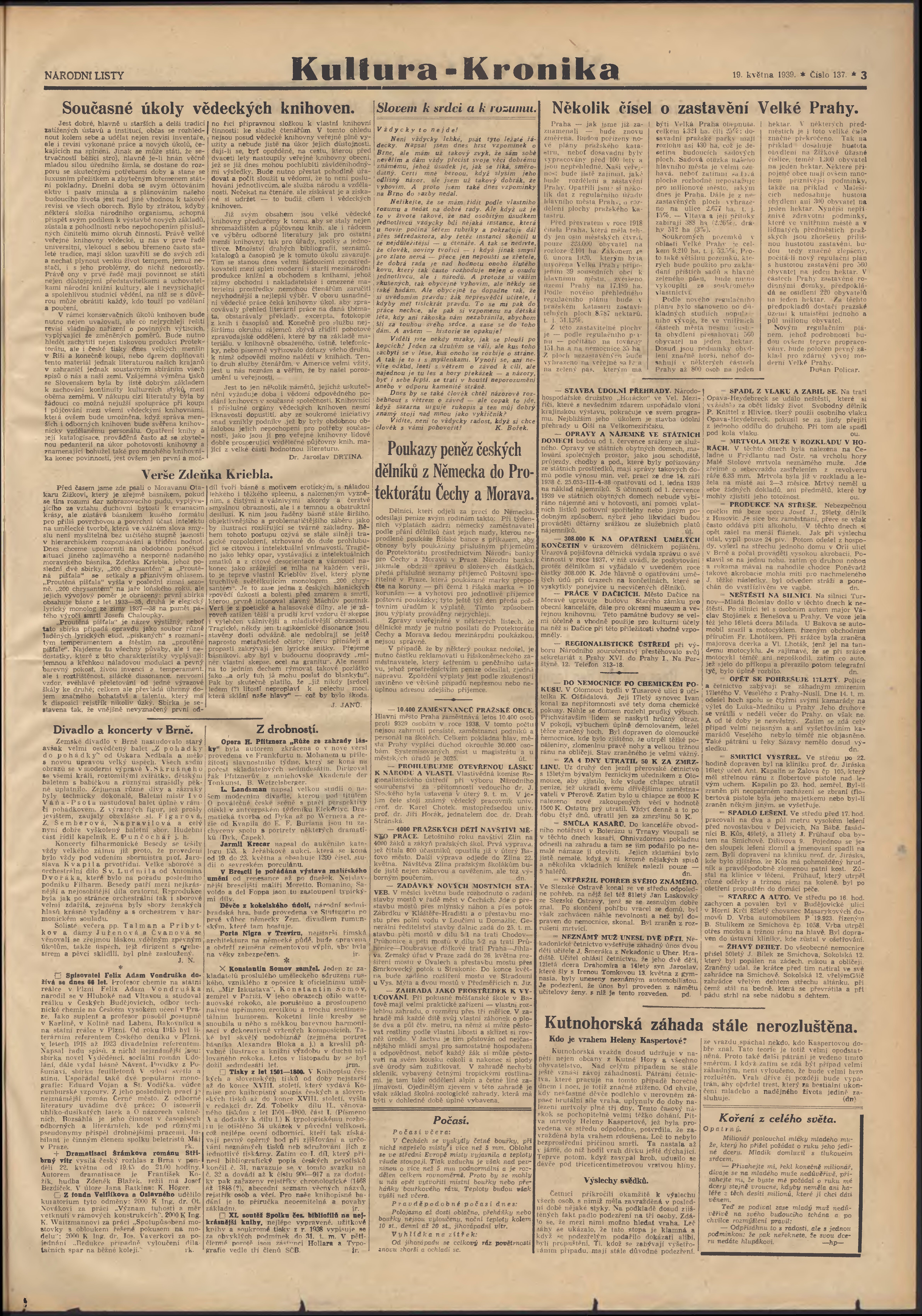 * Datum vydání výtisku: 19.5.1939 Číslo výtisku: 137 Poznámky k výtisku: 1. vydání;