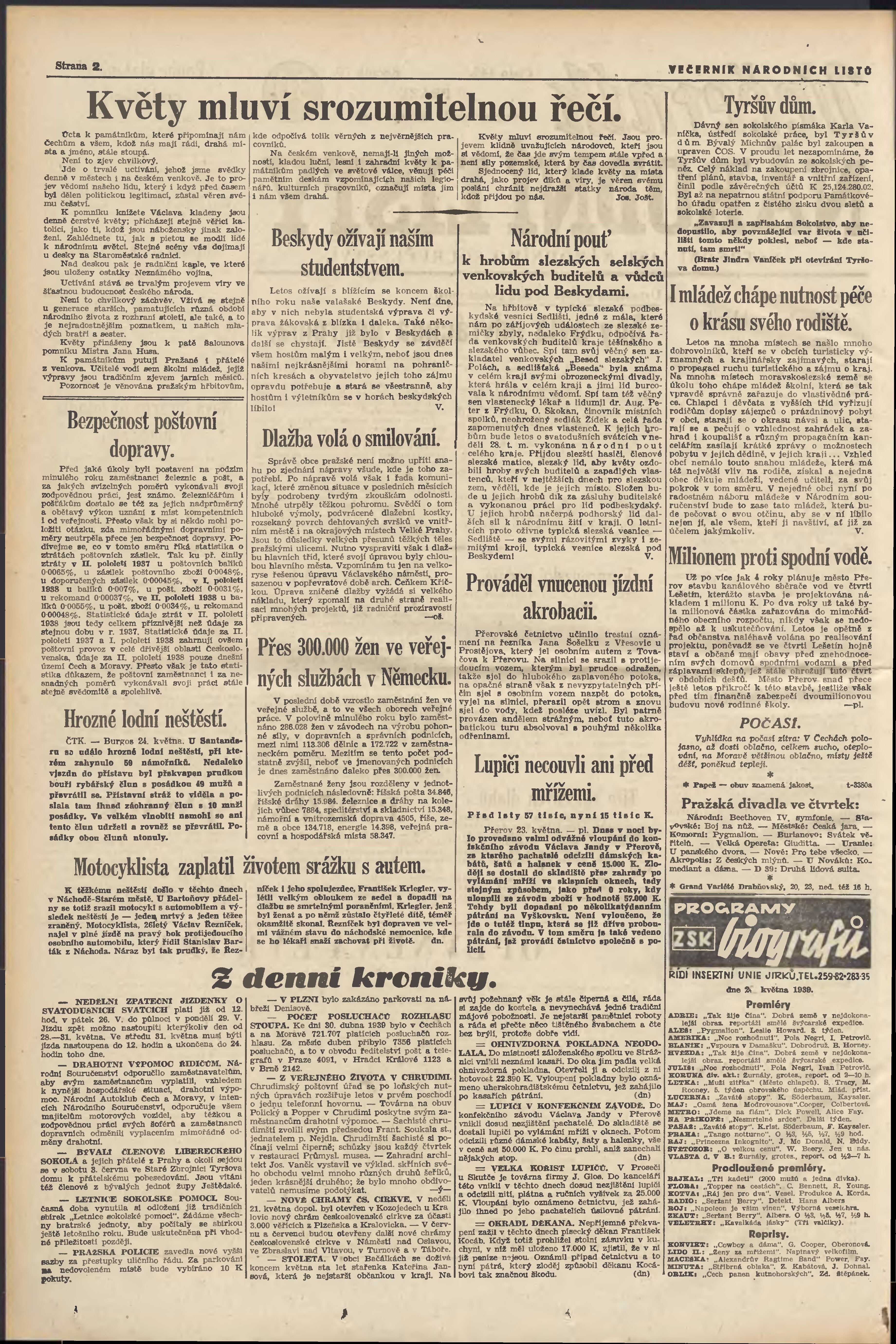 * Datum vydání výtisku: 25.5.1939 Číslo výtisku: 143 Poznámky k výtisku: večerní vydání; 1. vydání;