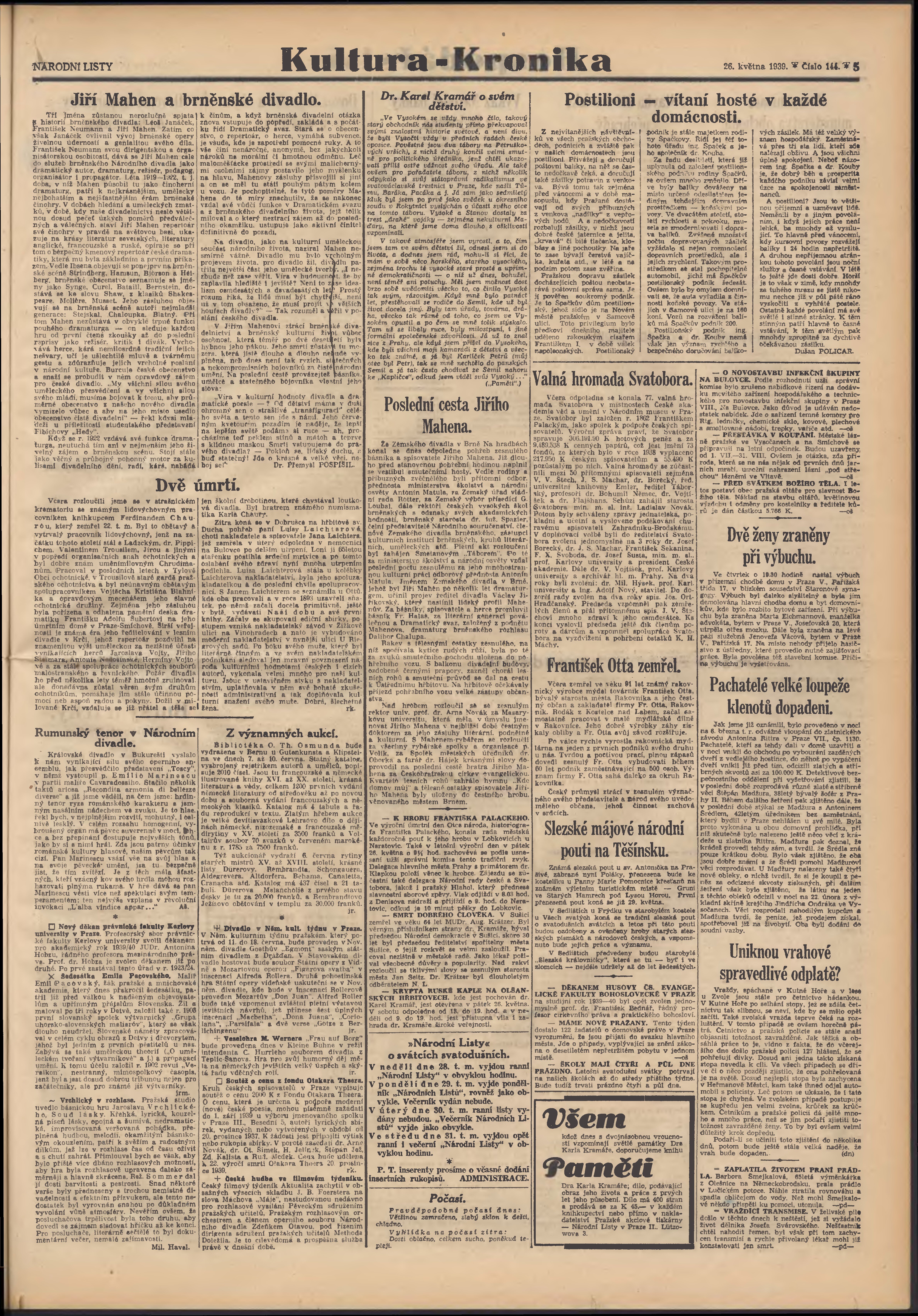 * Datum vydání výtisku: 26.5.1939 Číslo výtisku: 144 Poznámky k výtisku: 3. vydání;
