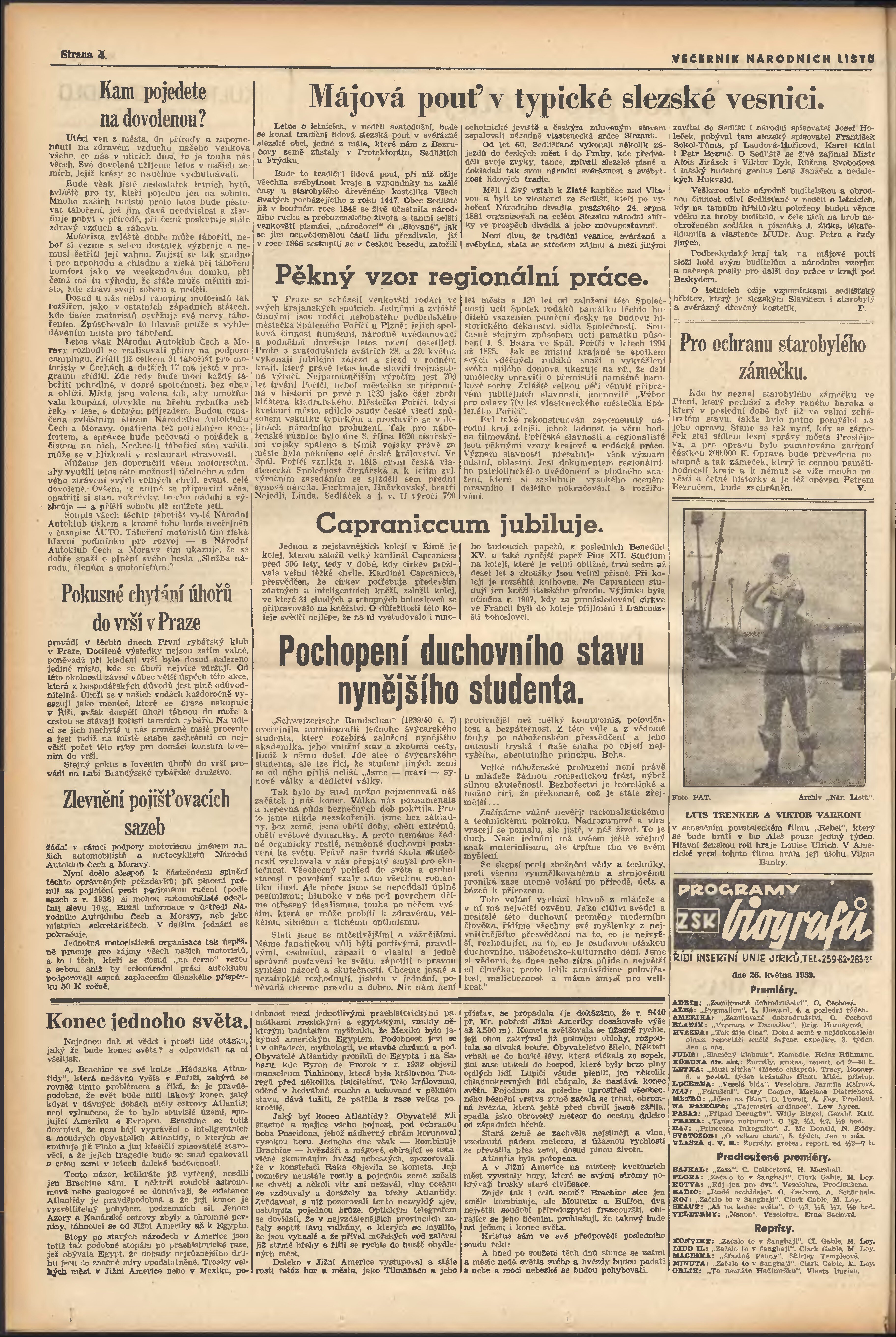 * Datum vydání výtisku: 26.5.1939 Číslo výtisku: 144 Poznámky k výtisku: večerní vydání; 2. vydání;