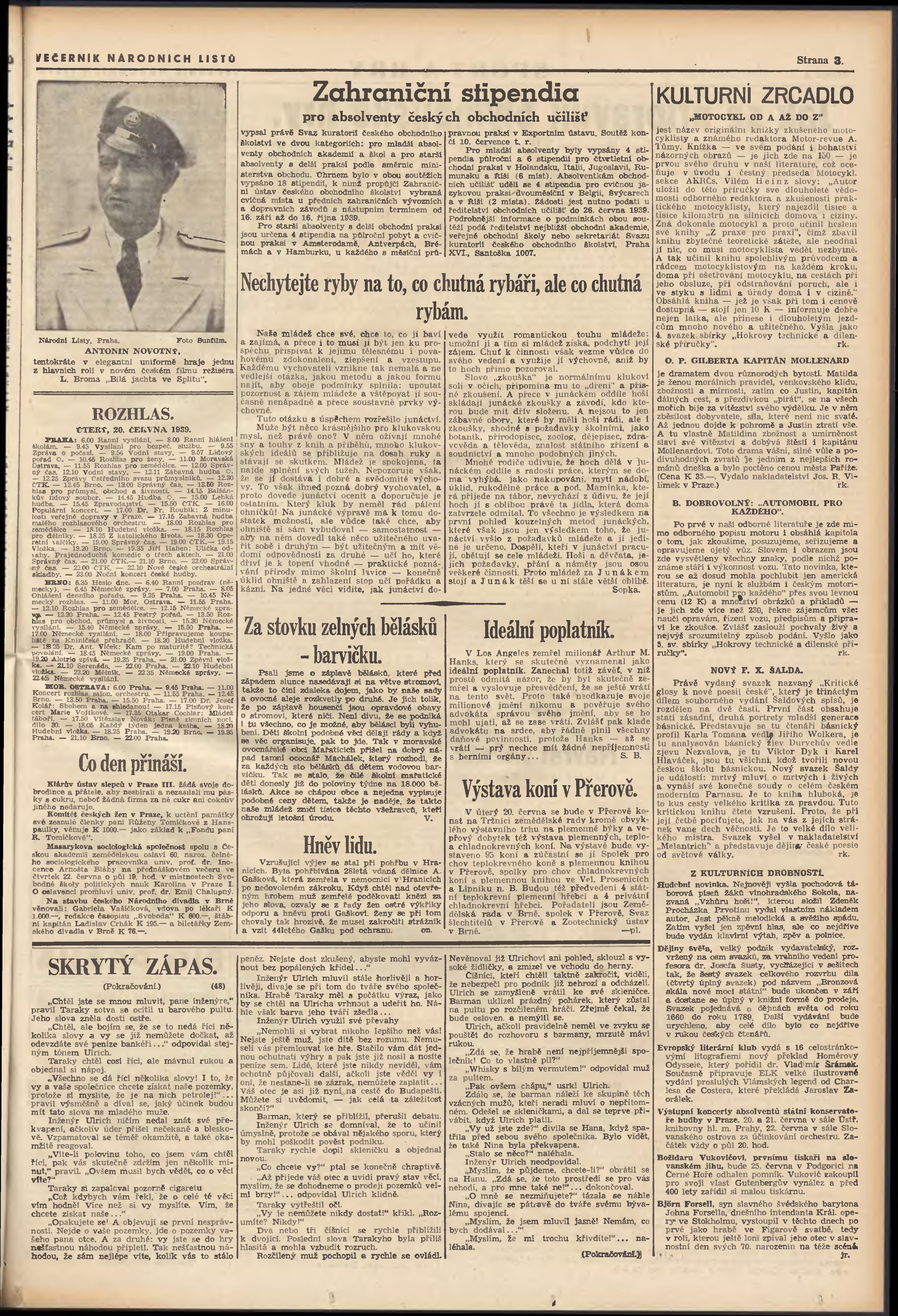 * Datum vydání výtisku: 19.6.1939 Číslo výtisku: 167 Poznámky k výtisku: večerní vydání; 2. vydání;