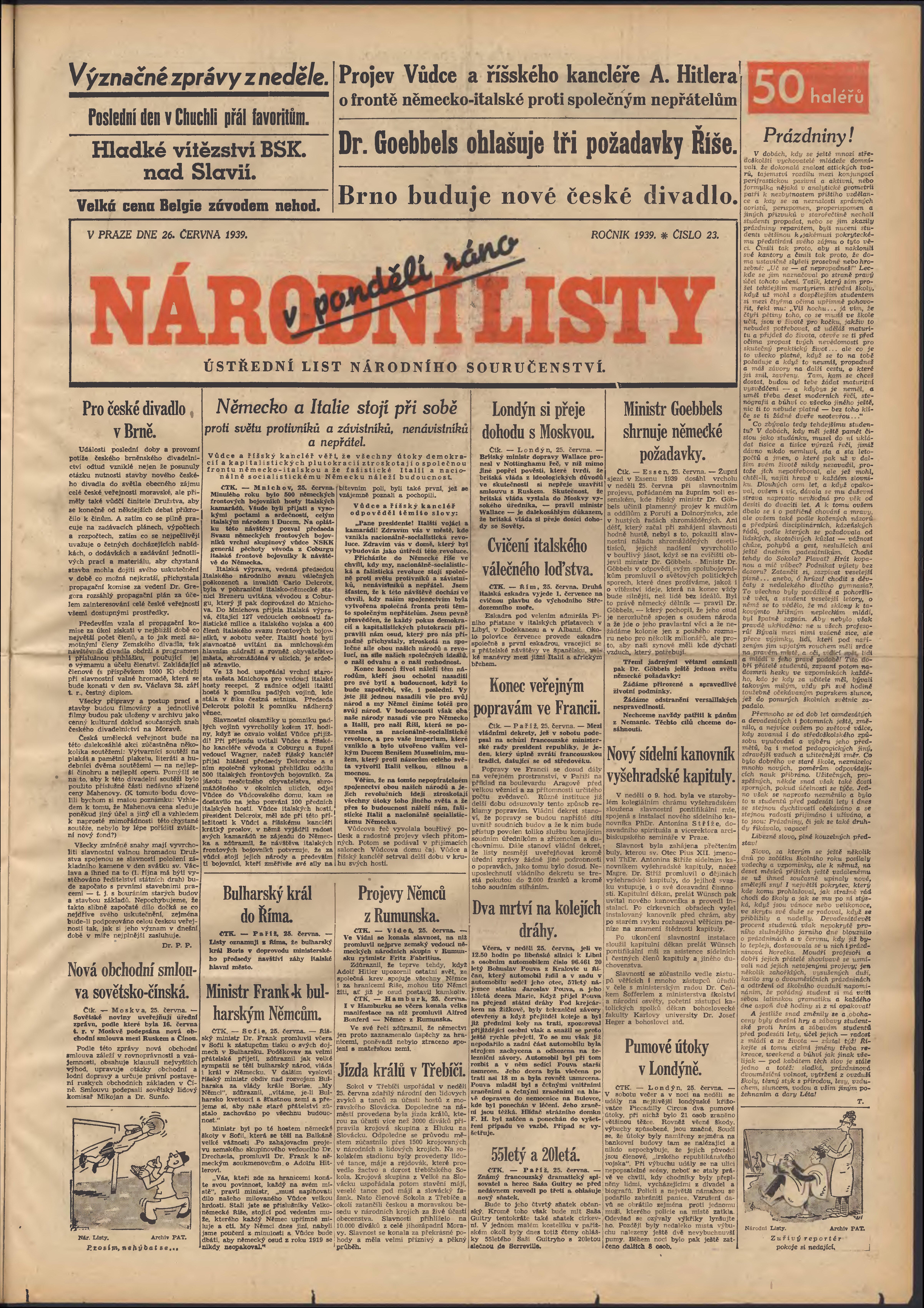 pondělní vydání;