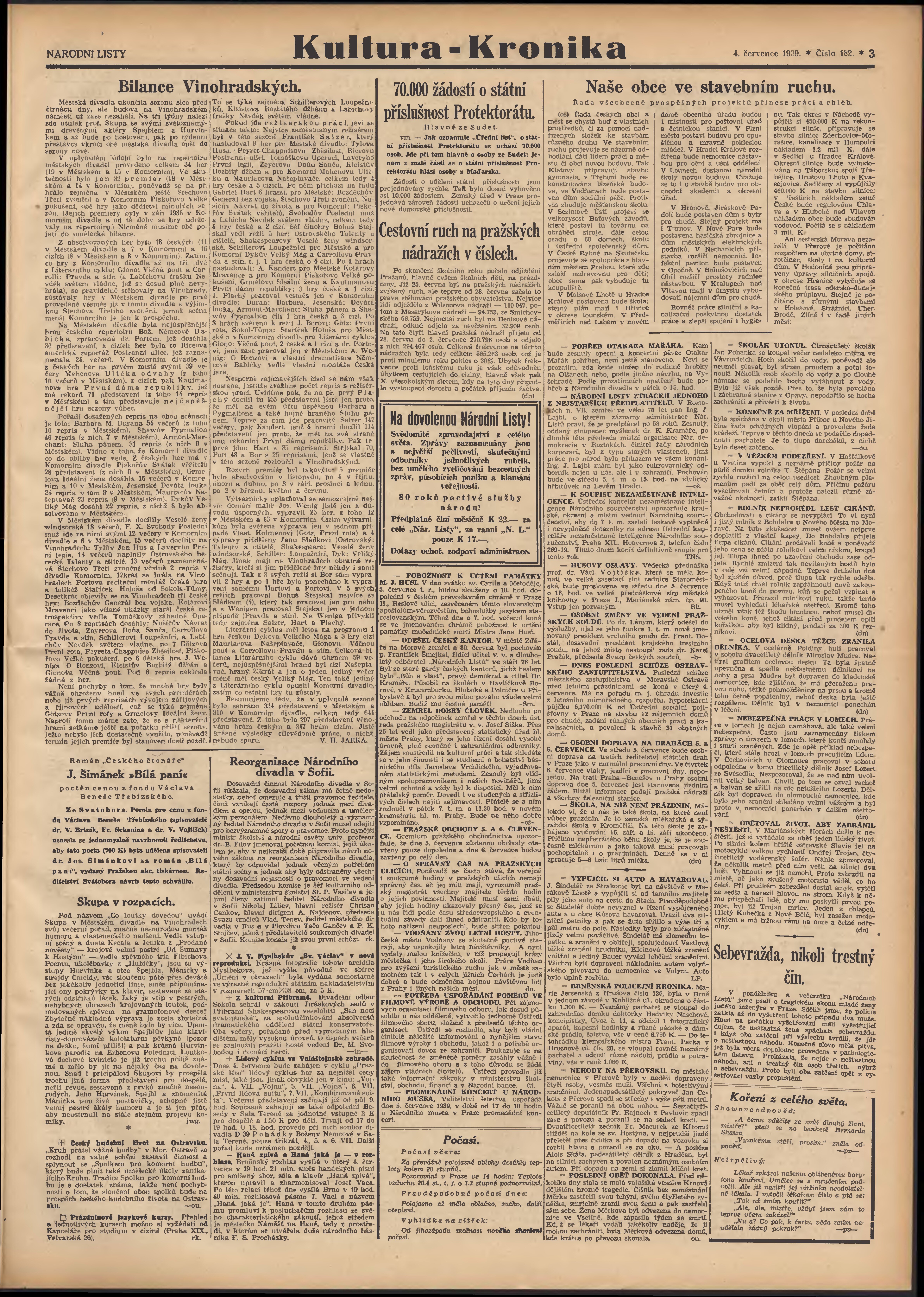 * Datum vydání výtisku: 4.7.1939 Číslo výtisku: 182 Poznámky k výtisku: 3. vydání;