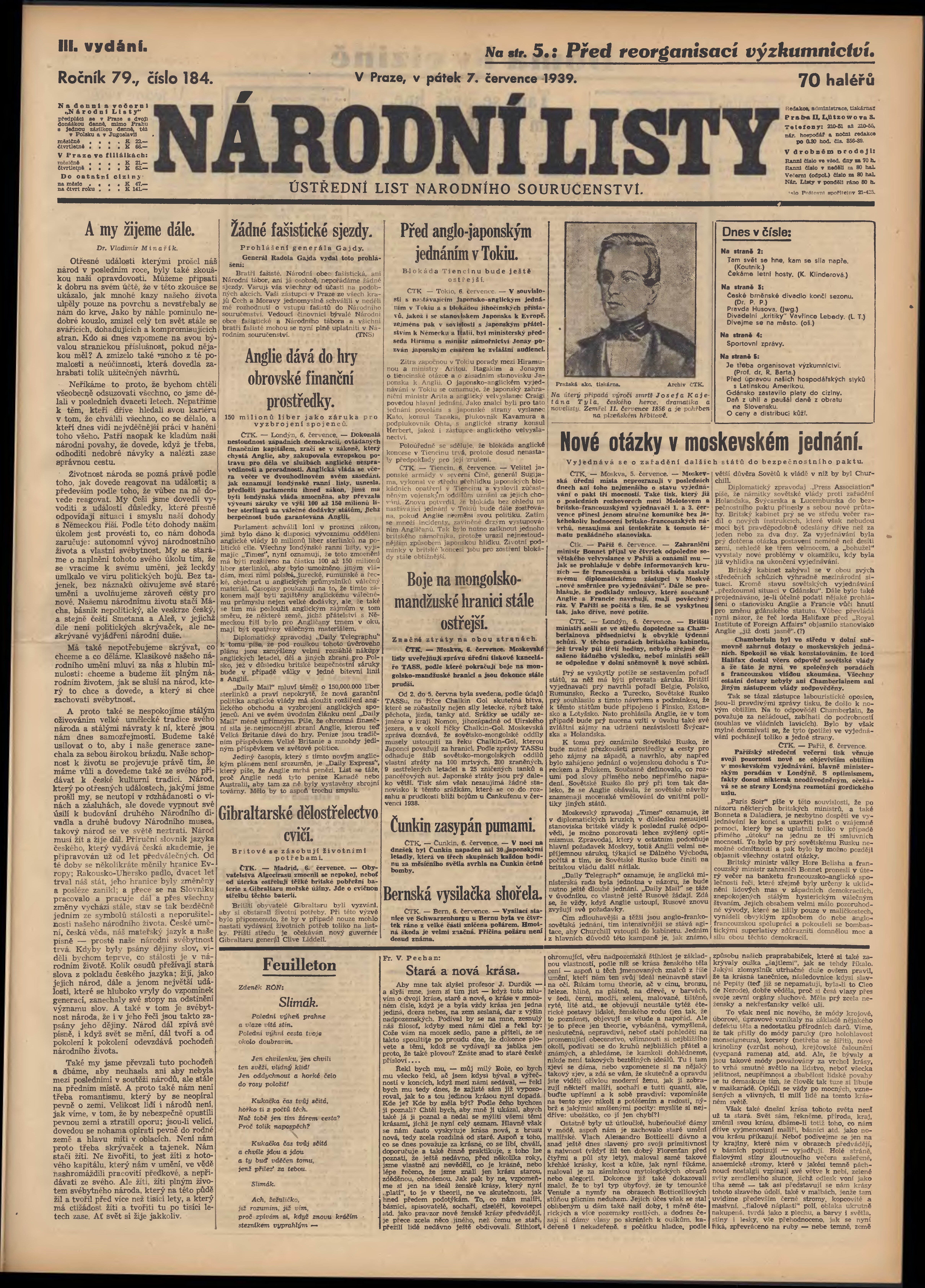 * Datum vydání výtisku: 7.7.1939 Číslo výtisku: 184 Poznámky k výtisku: 3. vydání;