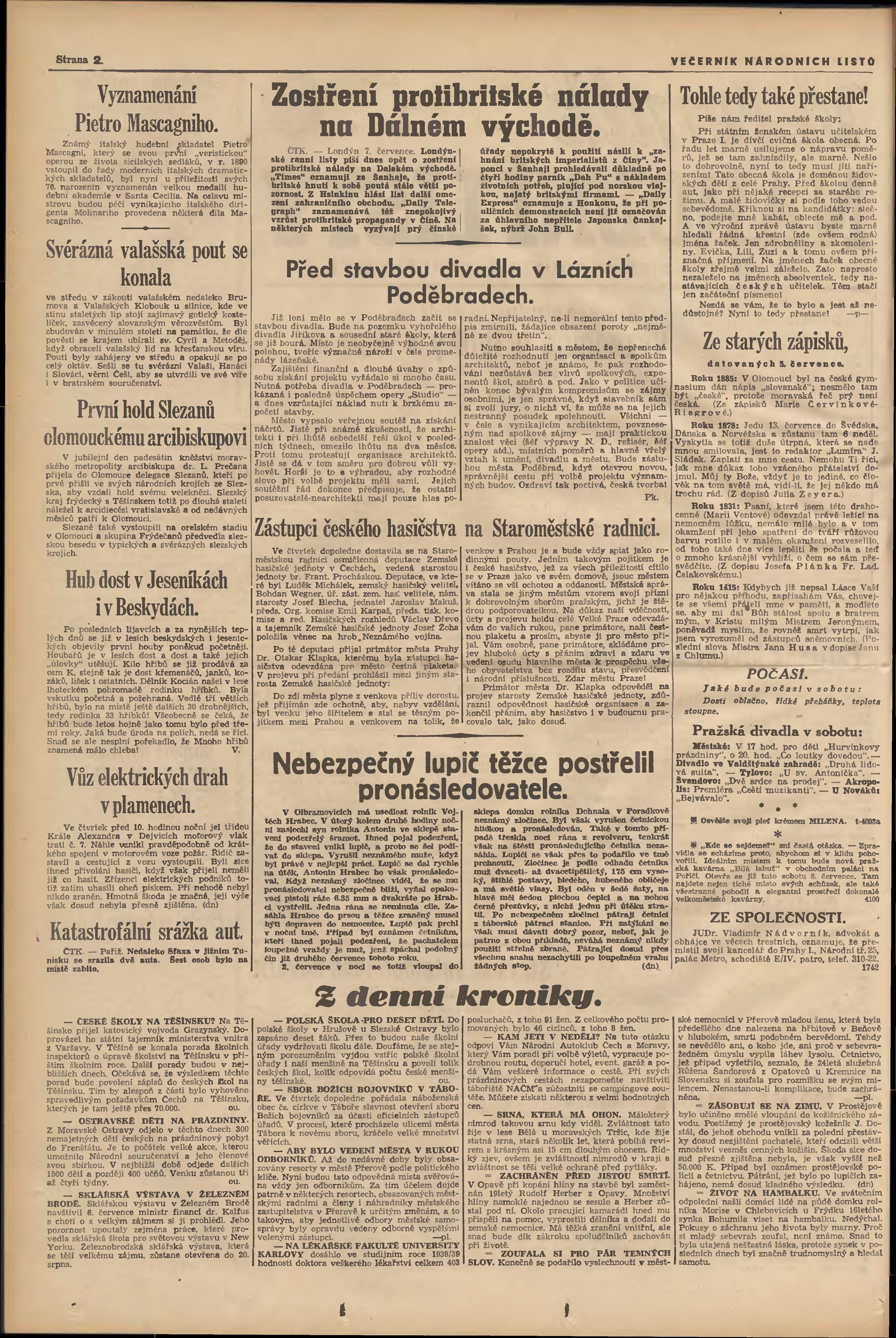 * Datum vydání výtisku: 8.7.1939 Číslo výtisku: 185 Poznámky k výtisku: večerní vydání; 1. vydání;