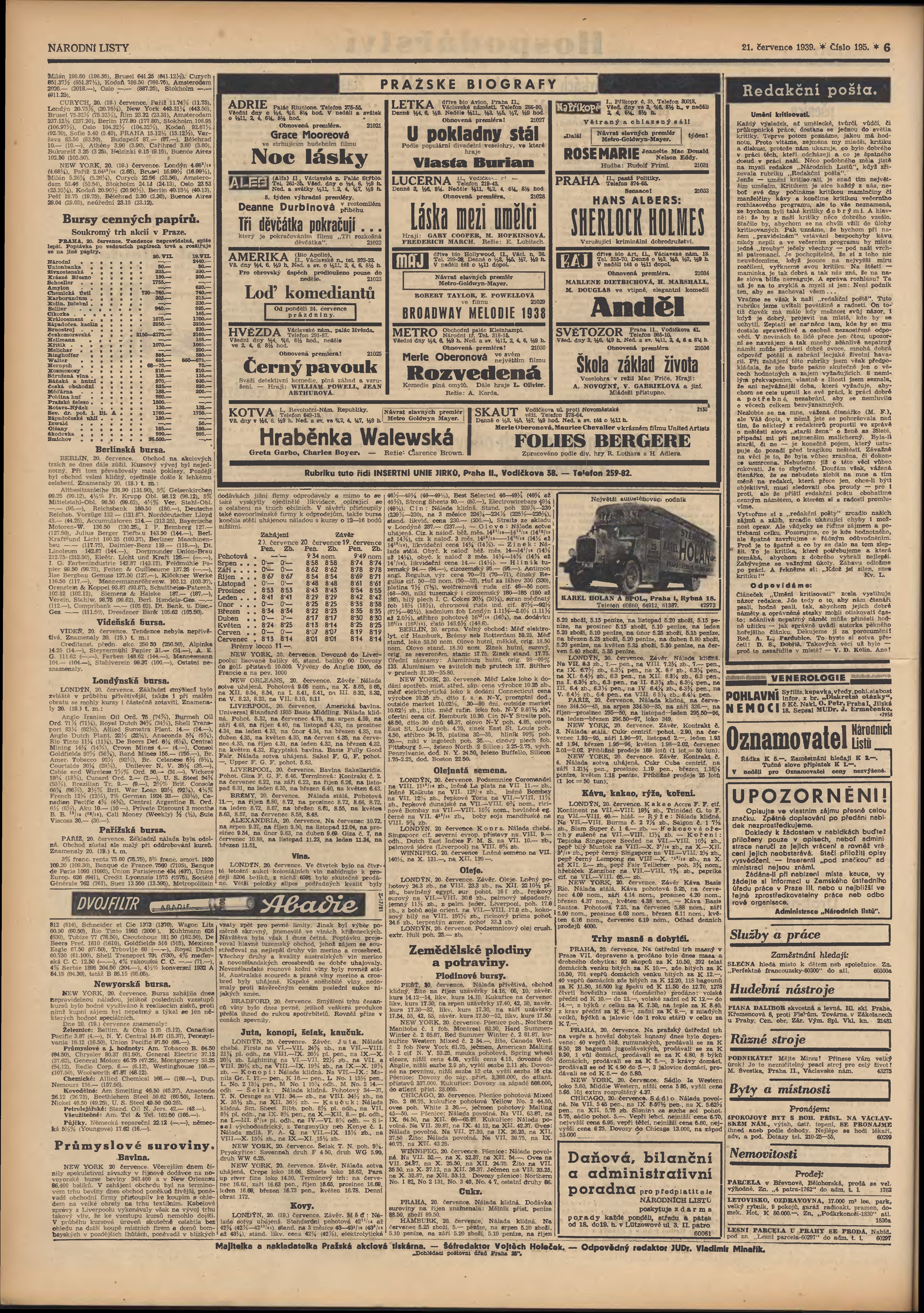 * Datum vydání výtisku: 21.7.1939 Číslo výtisku: 195 Poznámky k výtisku: 3. vydání;