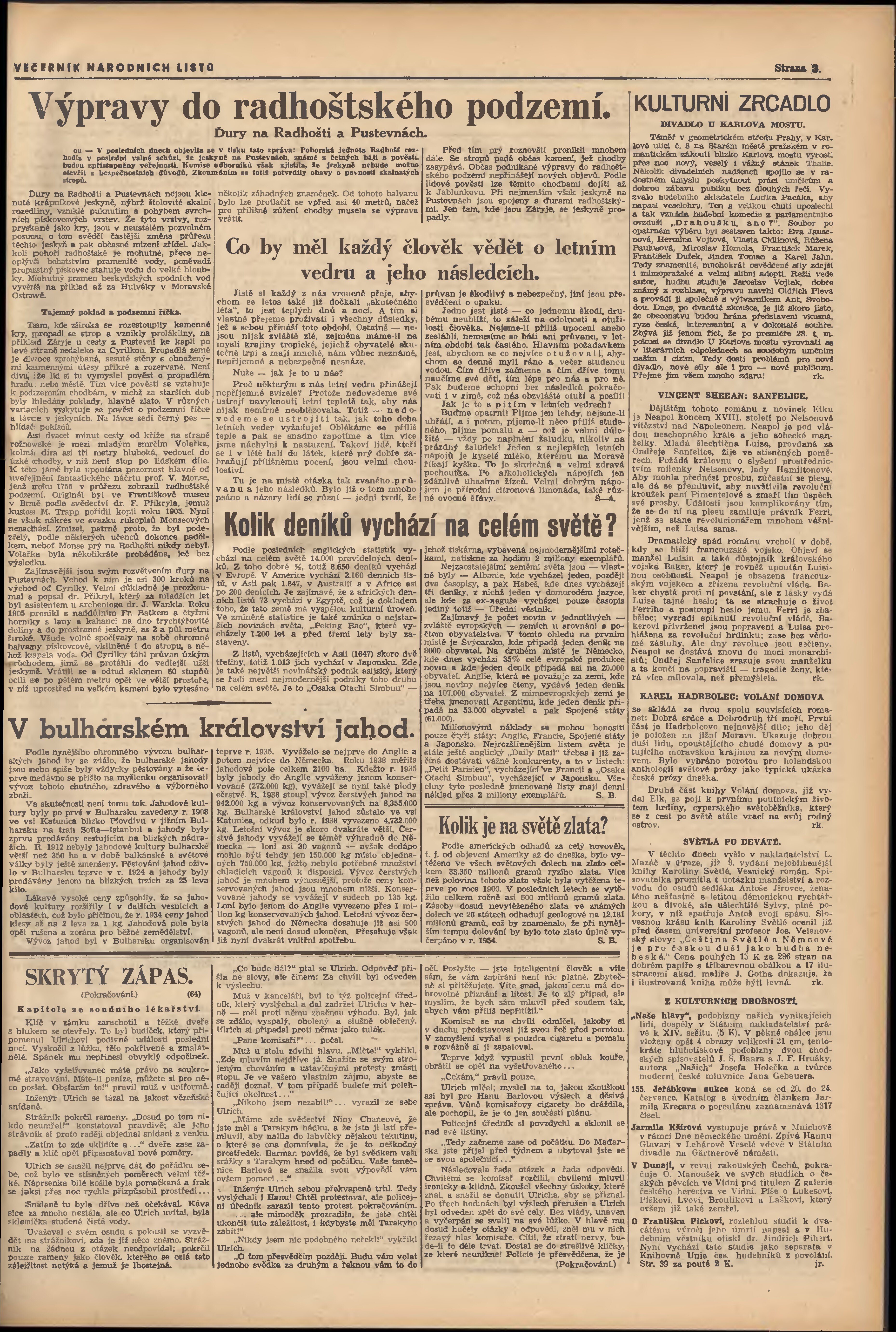 * Datum vydání výtisku: 21.7.1939 Číslo výtisku: 195 Poznámky k výtisku: večerní vydání; 1. vydání;