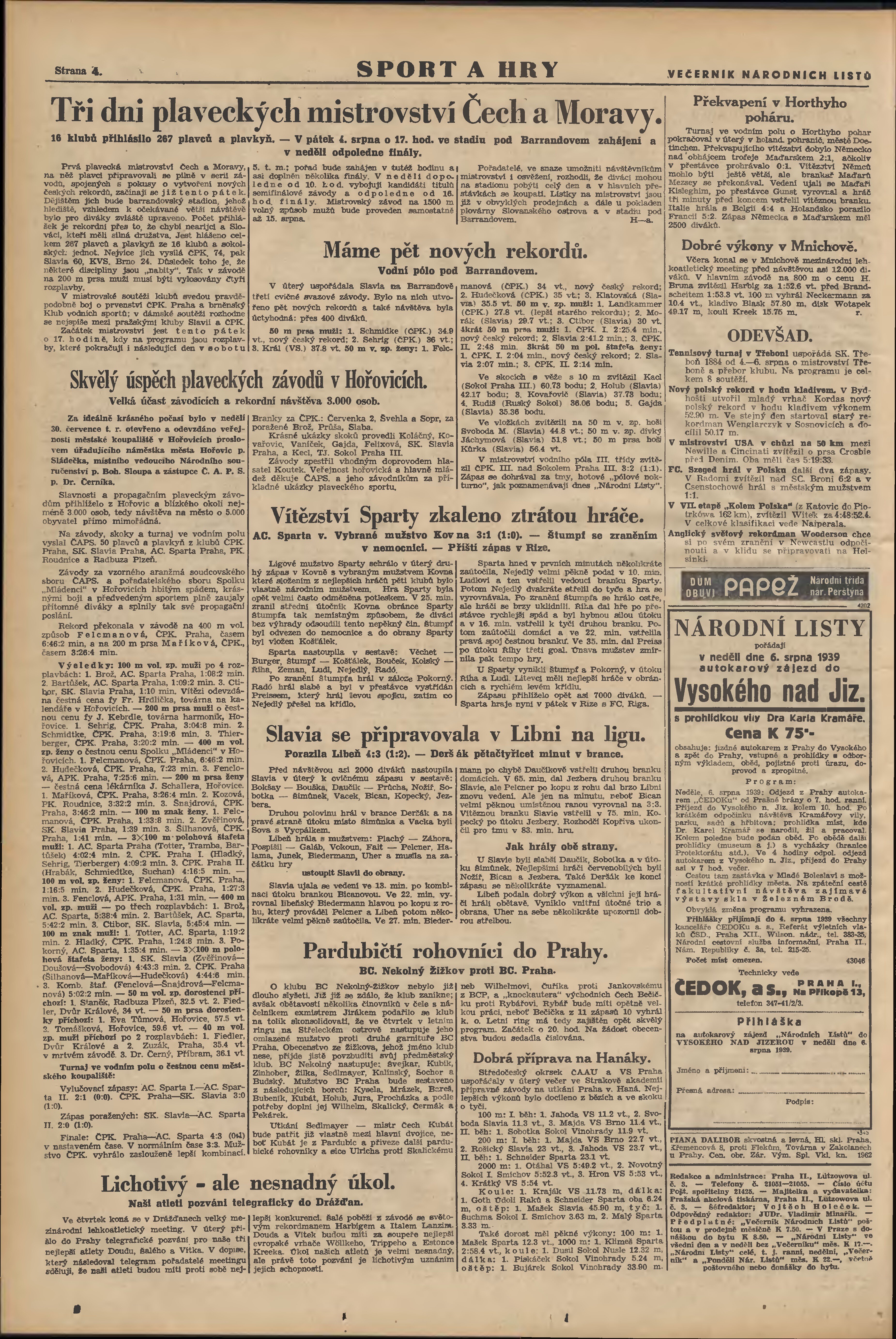 * Datum vydání výtisku: 2.8.1939 Číslo výtisku: 207 Poznámky k výtisku: večerní vydání; 1. vydání;