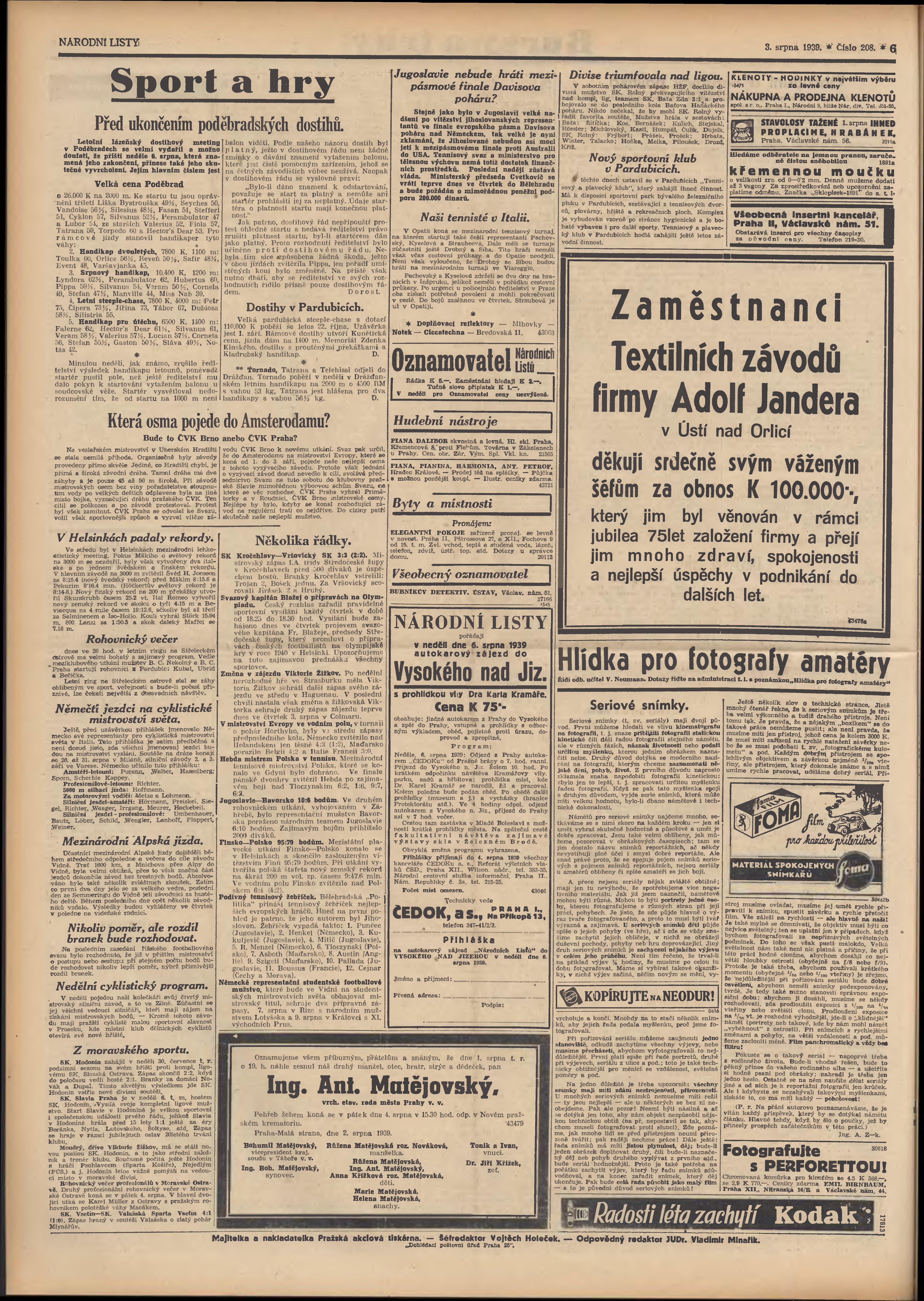 * Datum vydání výtisku: 3.8.1939 Číslo výtisku: 208 Poznámky k výtisku: 3. vydání;