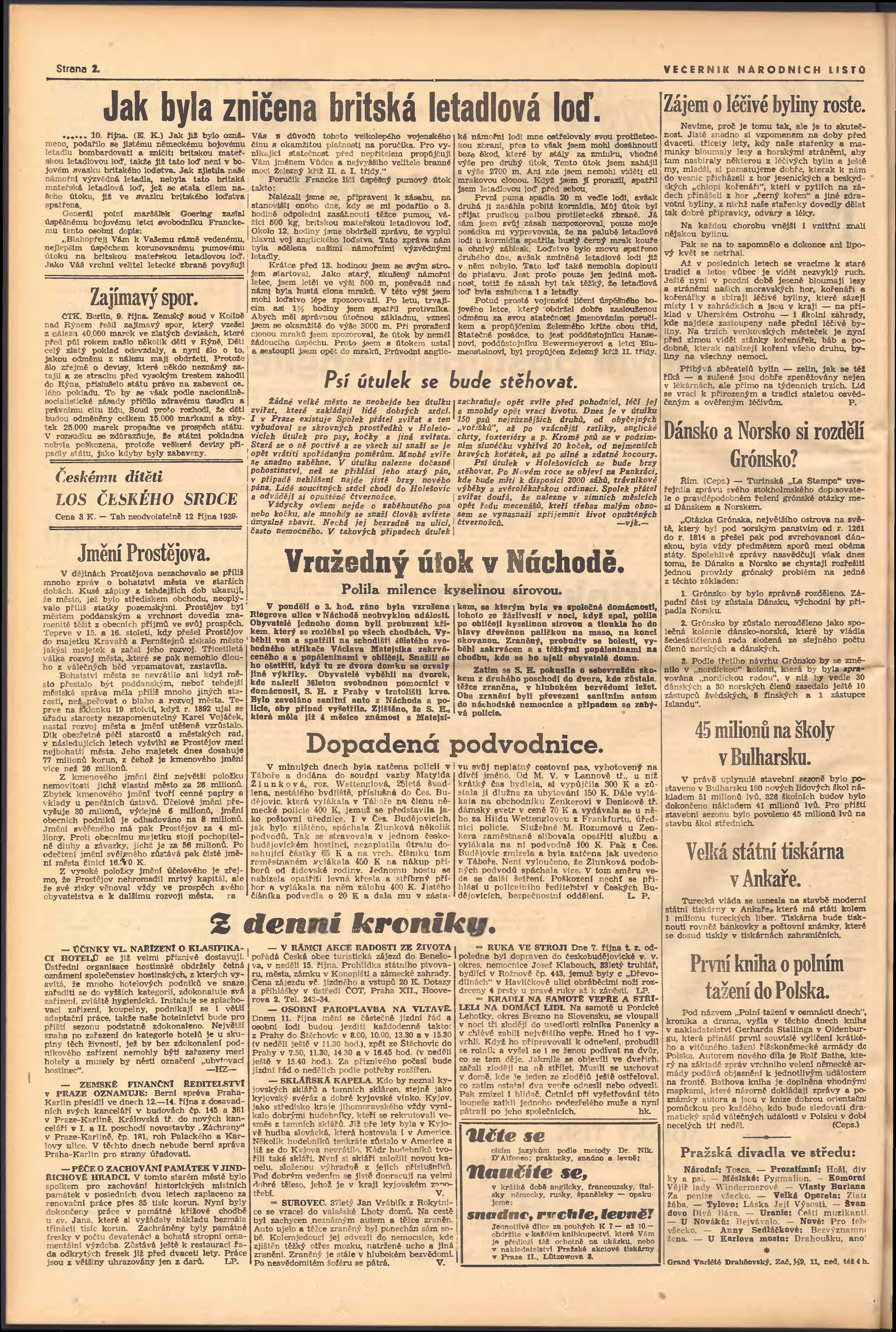 * Datum vydání výtisku: 11.10.1939 Číslo výtisku: 277 Poznámky k výtisku: večerní vydání; 1. vydání;