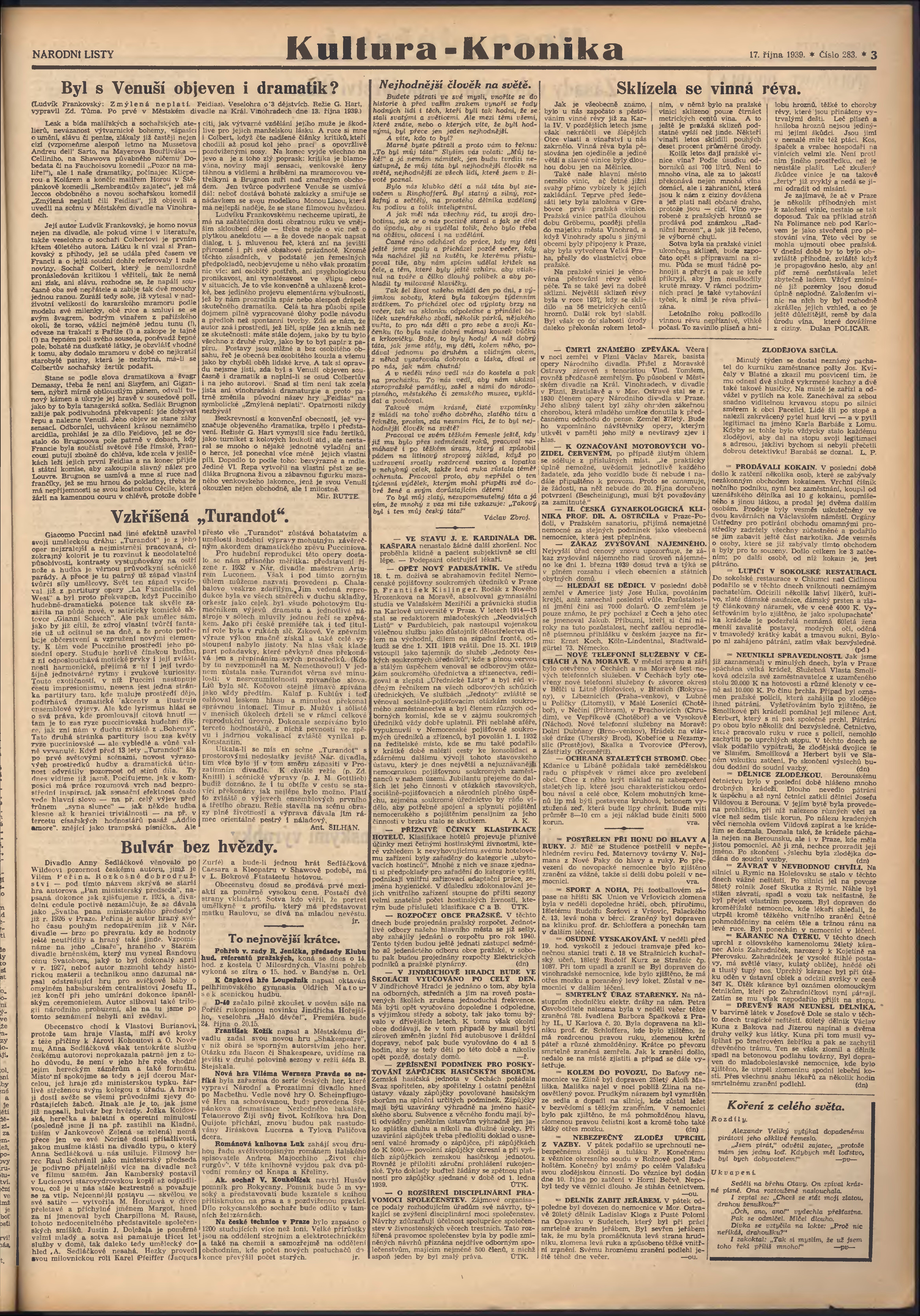 * Datum vydání výtisku: 17.10.1939 Číslo výtisku: 283 Poznámky k výtisku: 2. vydání;