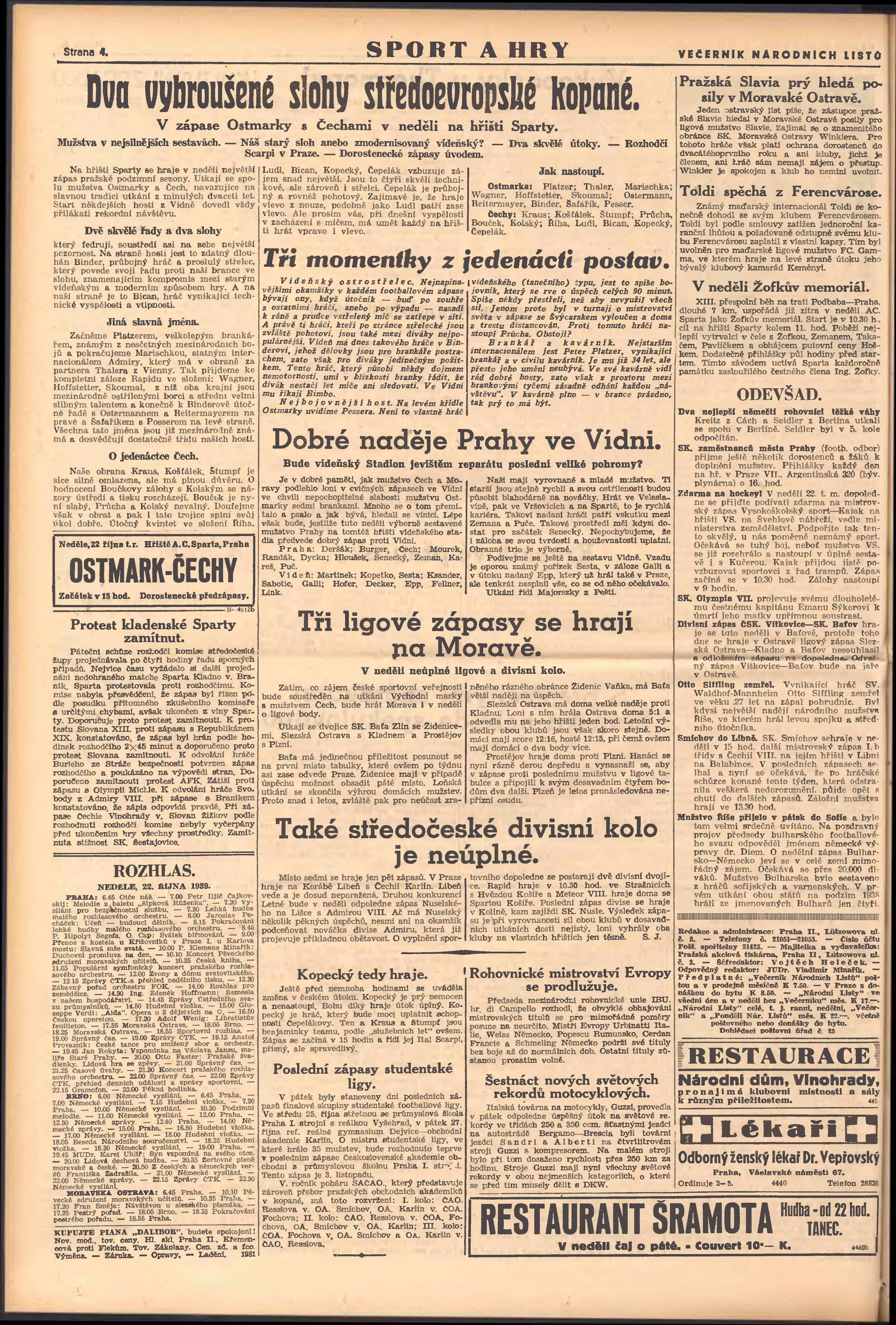 * Datum vydání výtisku: 21.10.1939 Číslo výtisku: 287 Poznámky k výtisku: večerní vydání; 2. vydání;