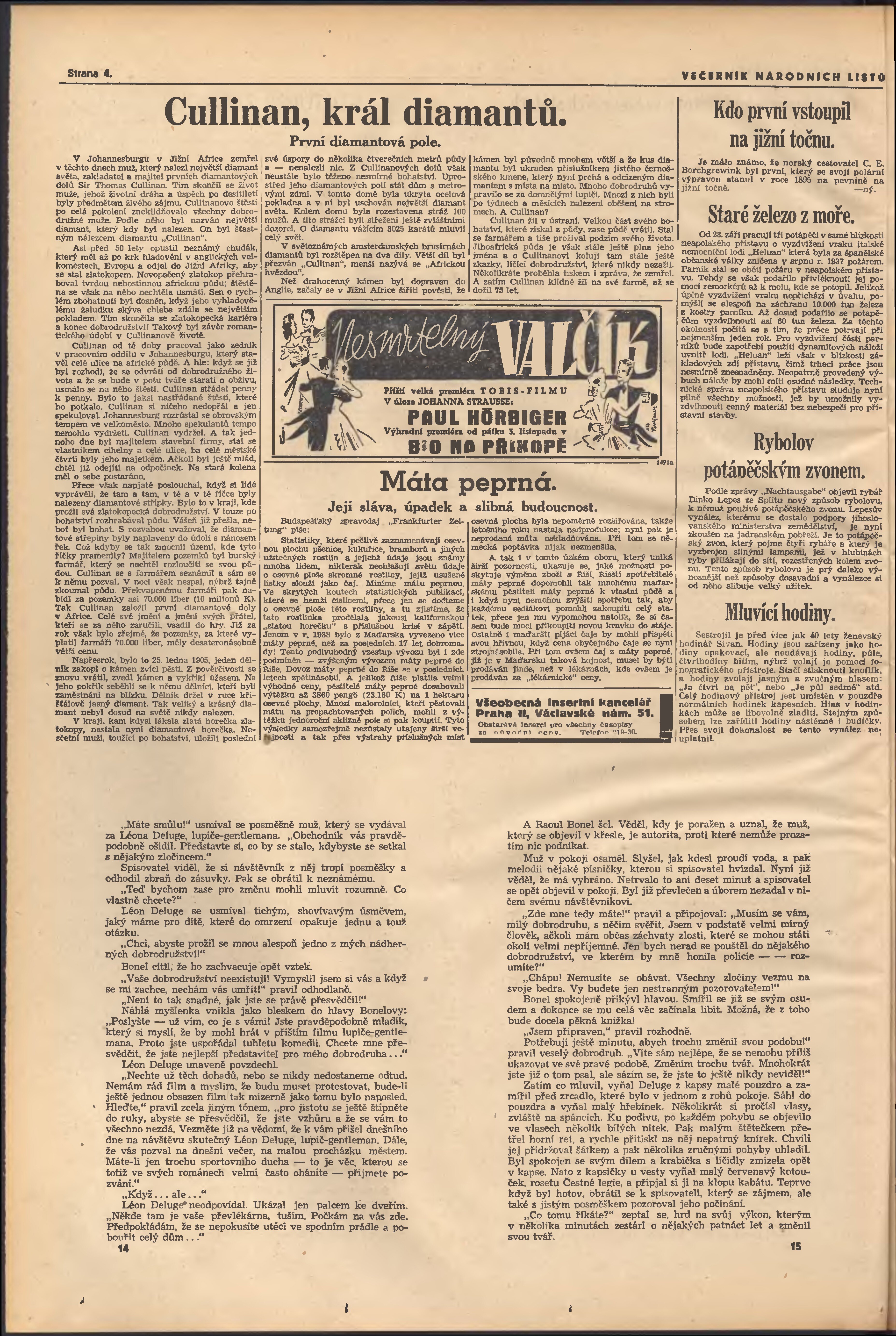 * Datum vydání výtisku: 3.11.1939 Číslo výtisku: 300 Poznámky k výtisku: večerní vydání; 1. vydání;