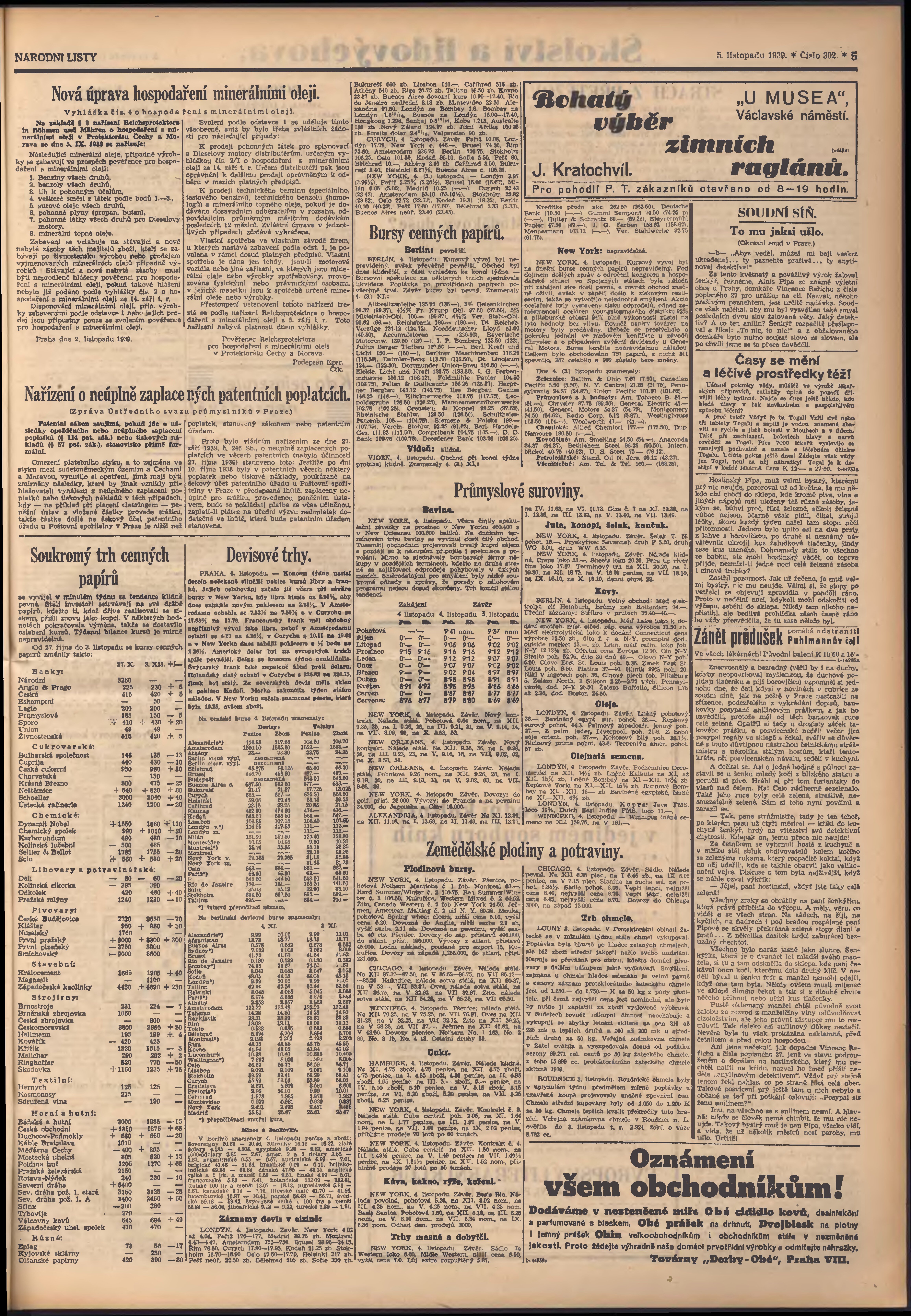 * Datum vydání výtisku: 5.11.1939 Číslo výtisku: 302 Poznámky k výtisku: 2. vydání;
