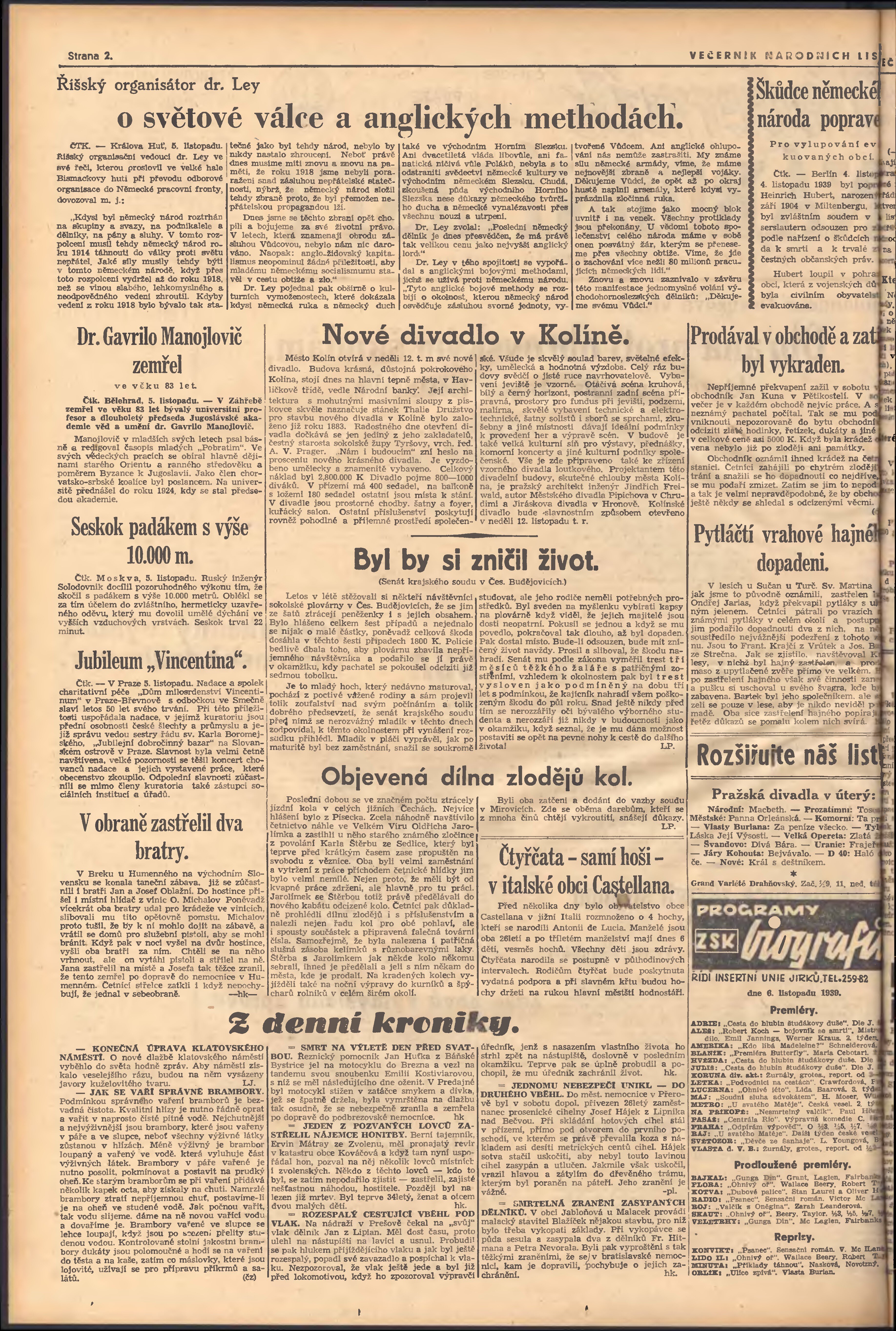 * Datum vydání výtisku: 6.11.1939 Číslo výtisku: 303 Poznámky k výtisku: večerní vydání; 2. vydání;