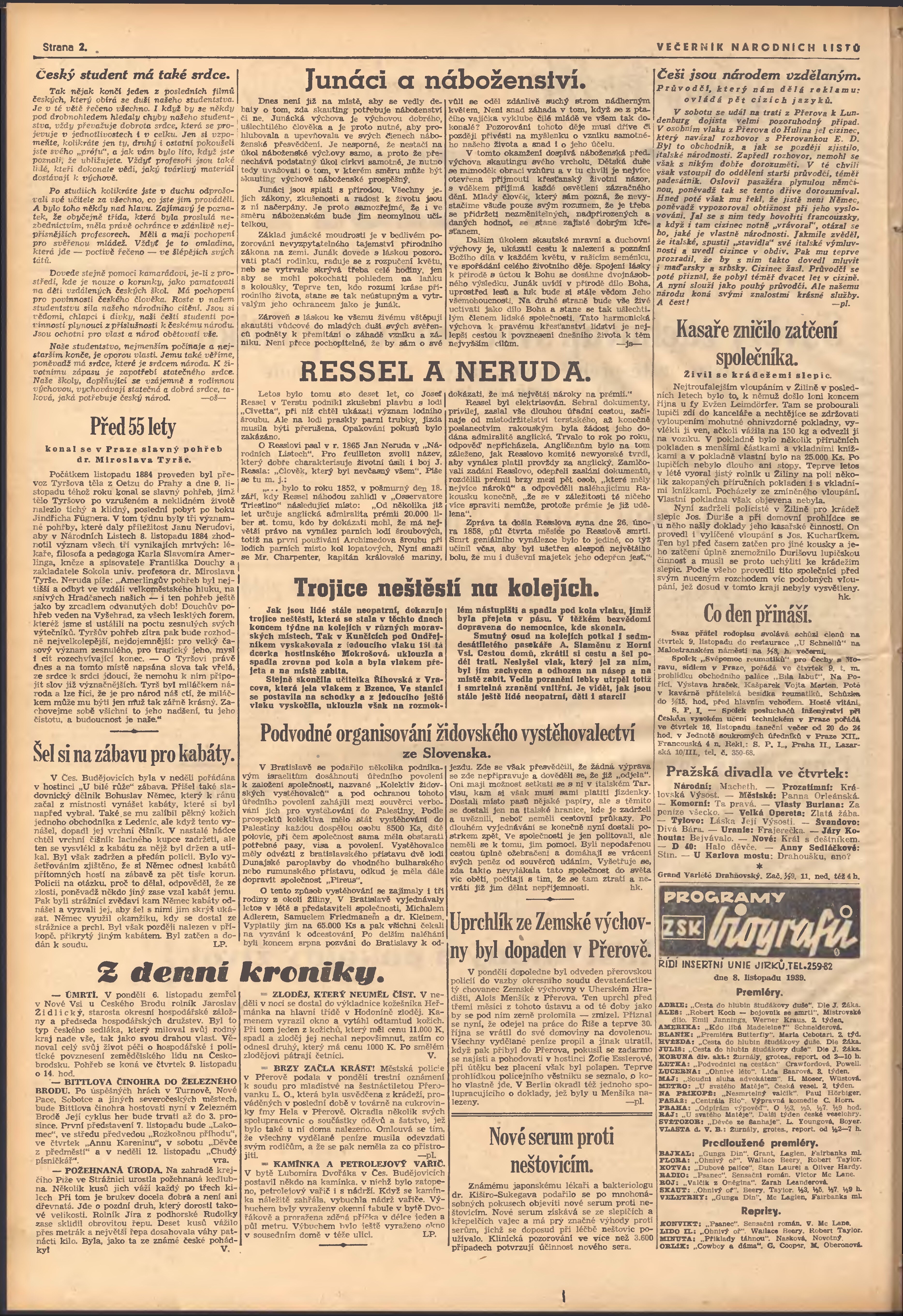 * Datum vydání výtisku: 8.11.1939 Číslo výtisku: 305 Poznámky k výtisku: večerní vydání; 2. vydání;