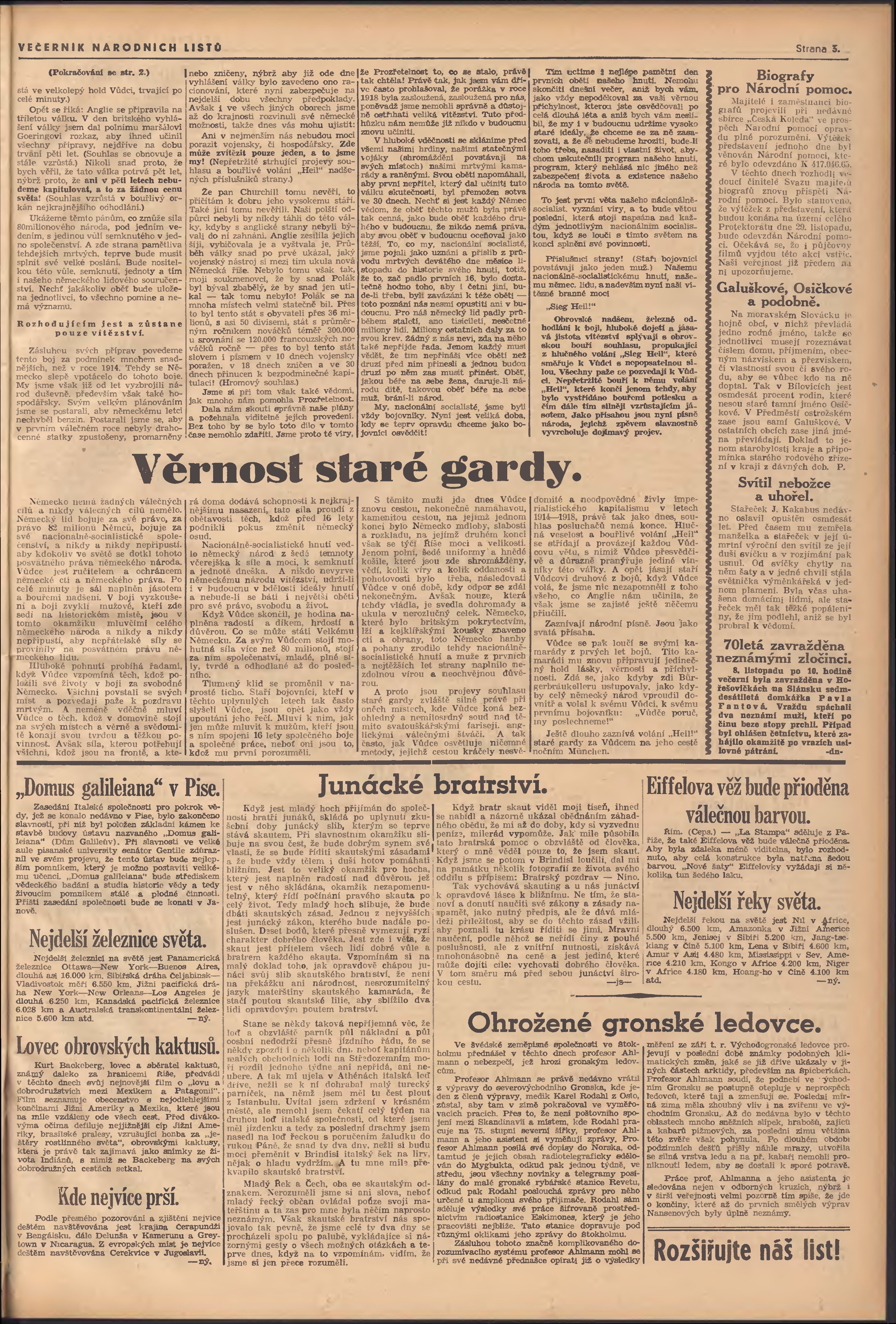 * Datum vydání výtisku: 9.11.1939 Číslo výtisku: 306 Poznámky k výtisku: večerní vydání; 2. vydání;