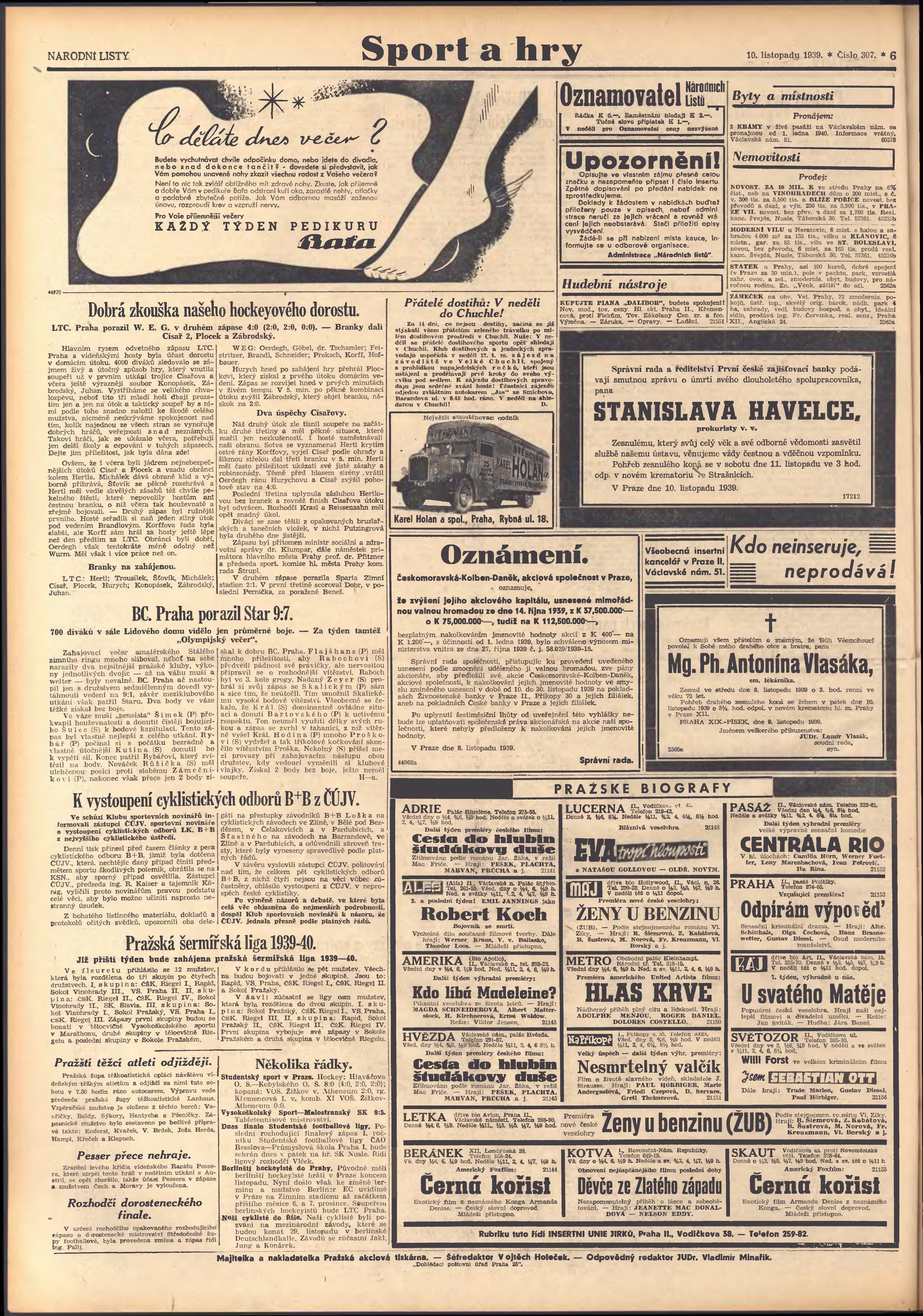 * Datum vydání výtisku: 10.11.1939 Číslo výtisku: 307 Poznámky k výtisku: 2. vydání;