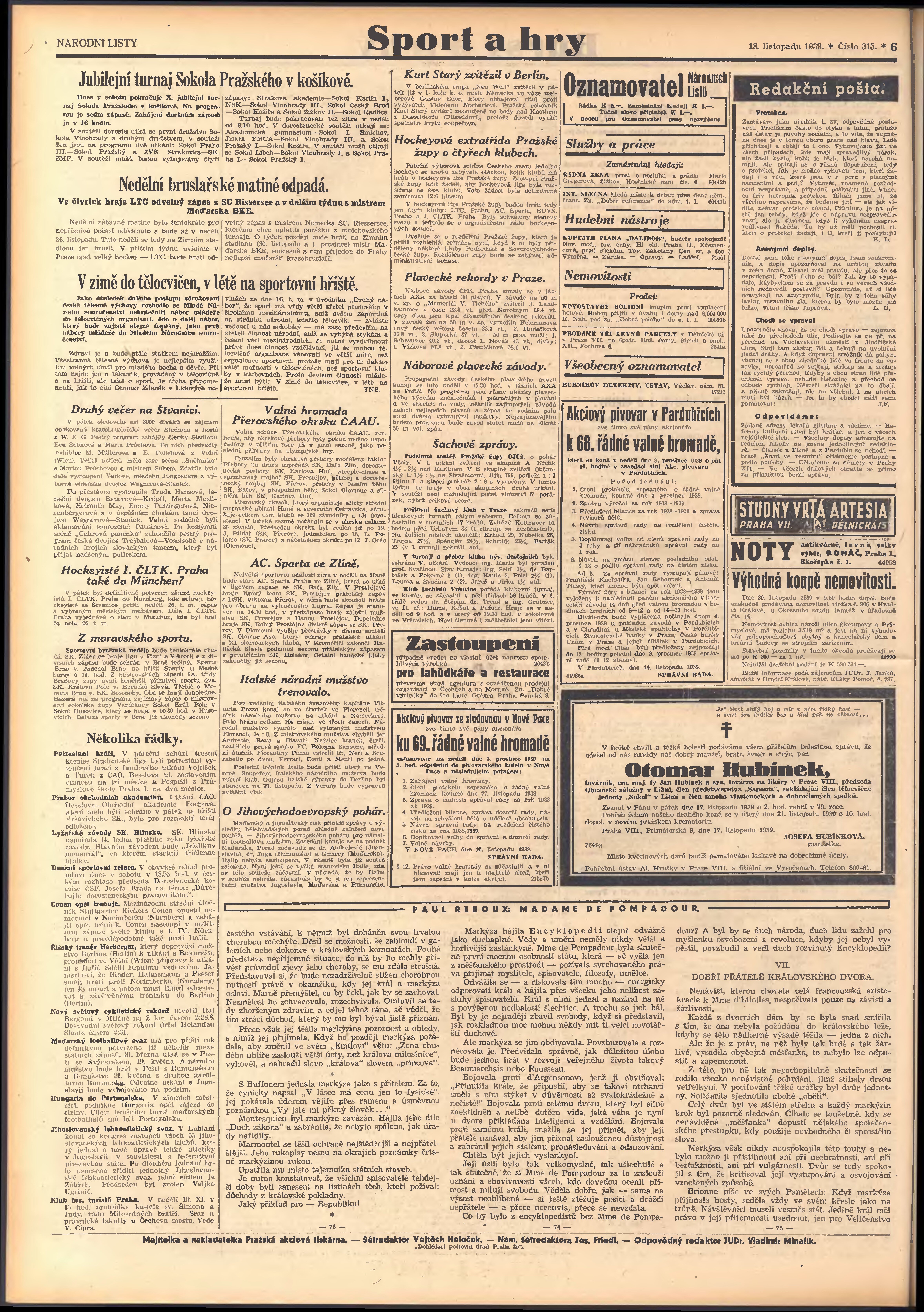* Datum vydání výtisku: 18.11.1939 Číslo výtisku: 315 Poznámky k výtisku: 2. vydání;