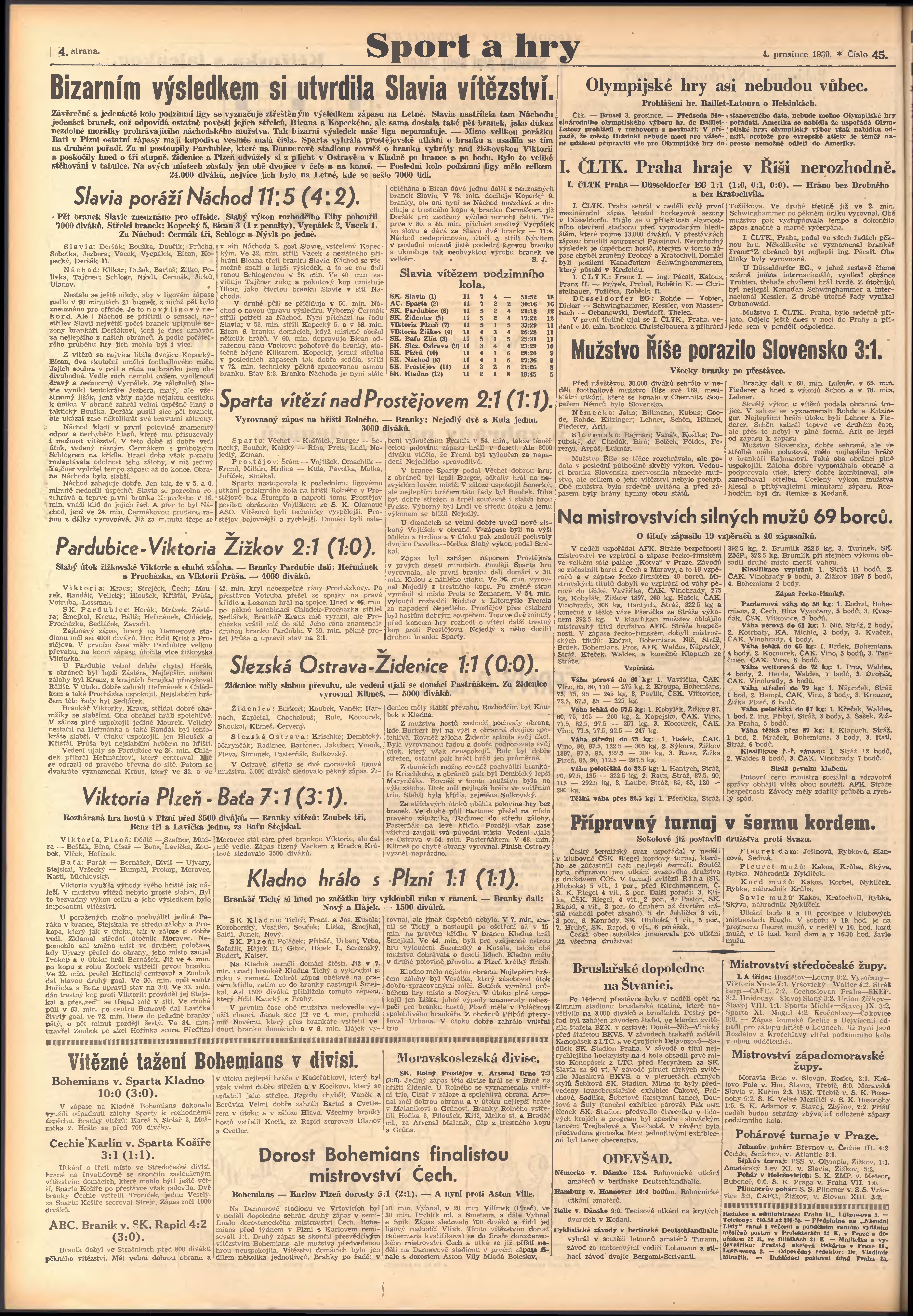 * Datum vydání výtisku: 4.12.1939 Číslo výtisku: 45 Poznámky k výtisku: pondělní vydání; 3.12.1939 (4.12.1939) chybný údaj v dataci;