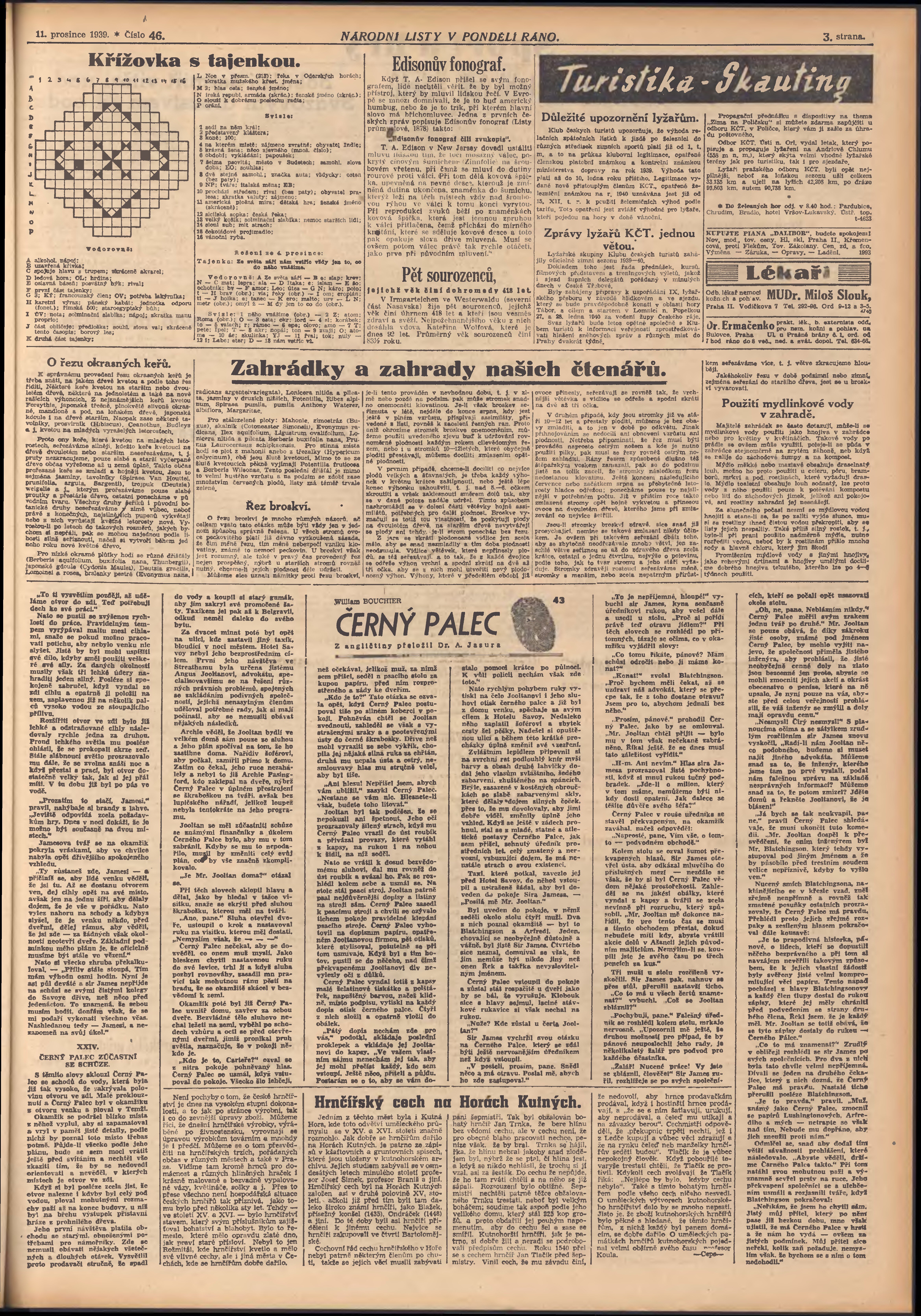 * Datum vydání výtisku: 11.12.1939 Číslo výtisku: 46 Poznámky k výtisku: pondělní vydání;