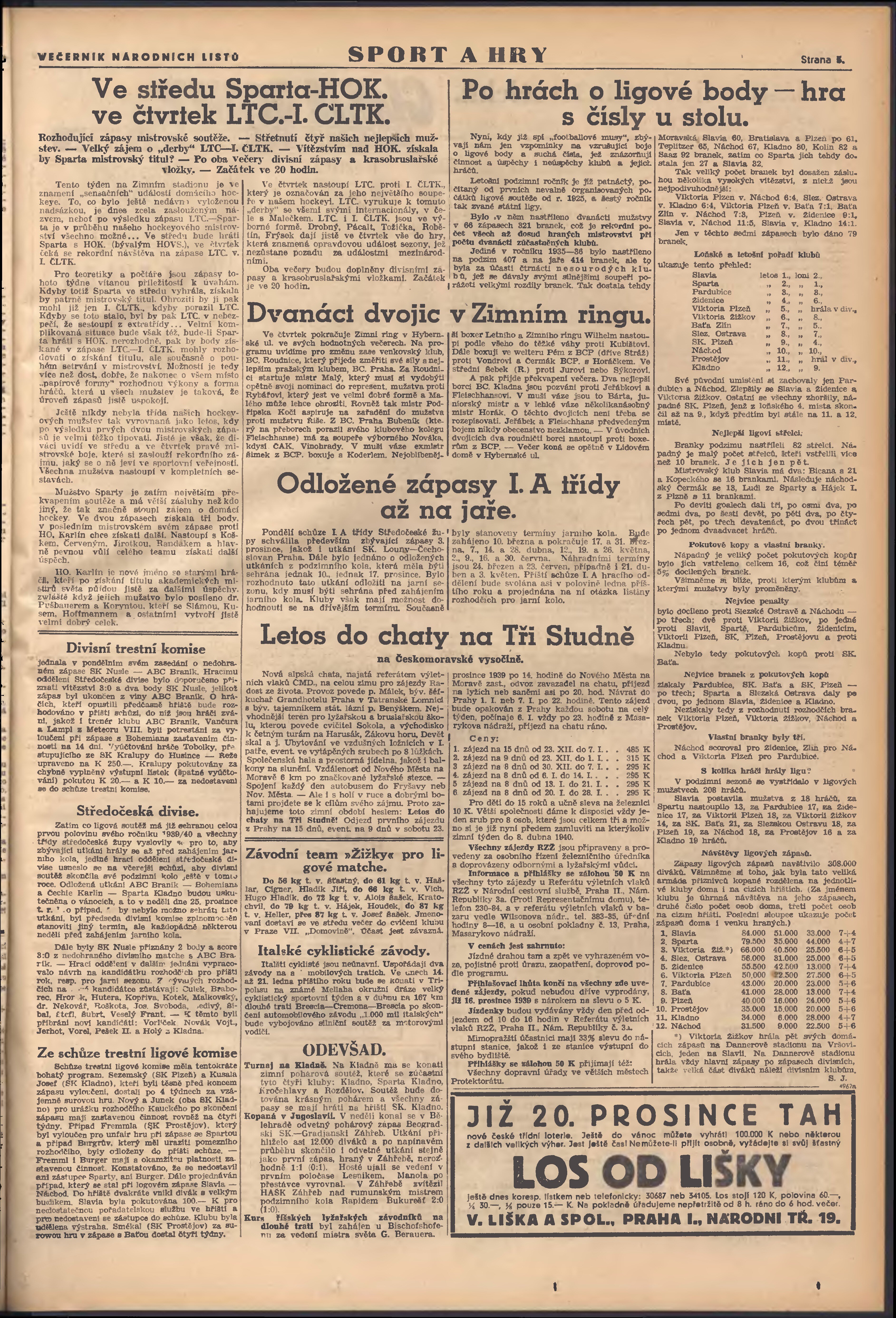 * Datum vydání výtisku: 12.12.1939 Číslo výtisku: 339 Poznámky k výtisku: večerní vydání; 1. vydání;