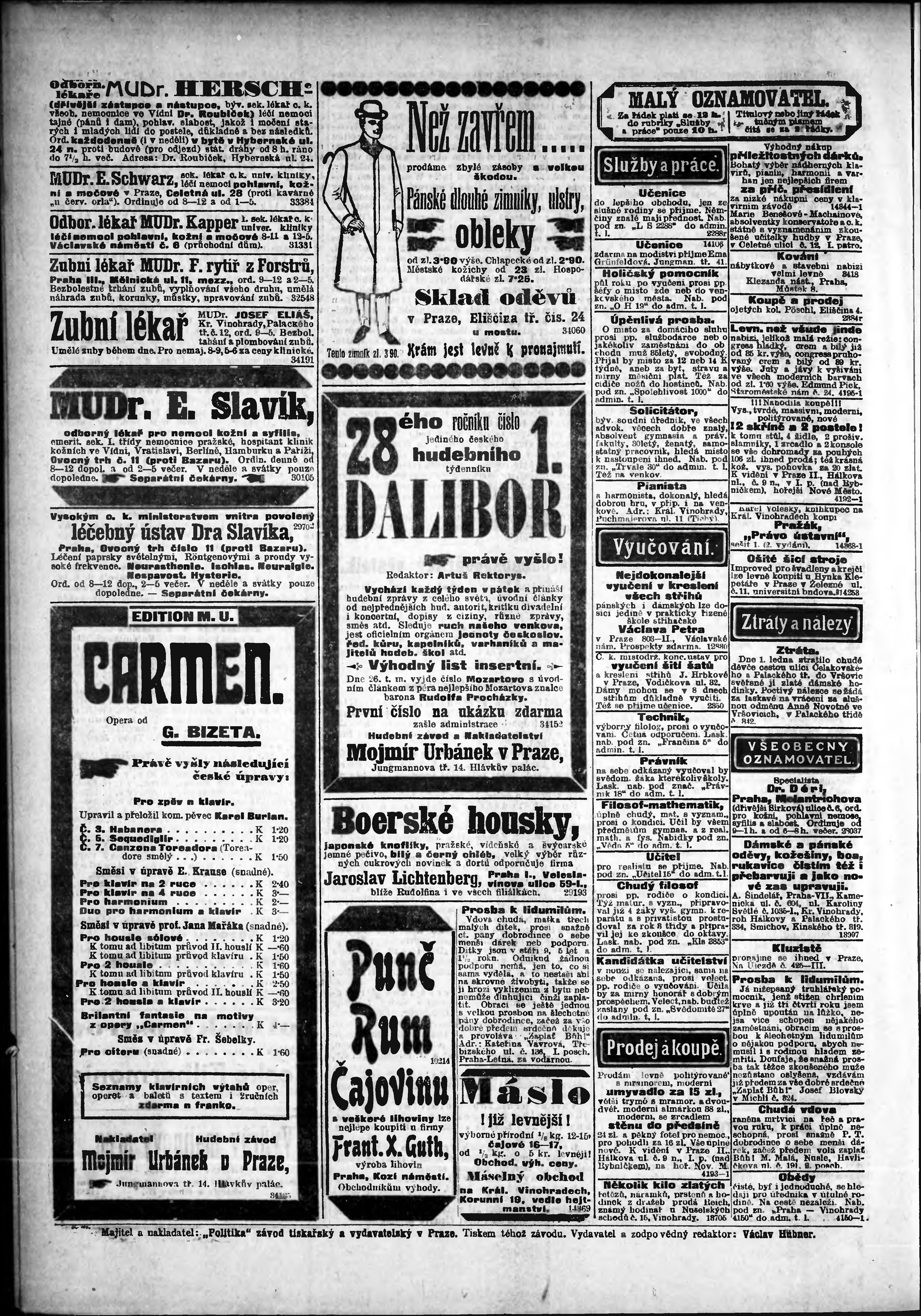 * Datum vydání výtisku: 4.1.1906 Číslo výtisku: 3 Poznámky k výtisku: odpolední vydání;