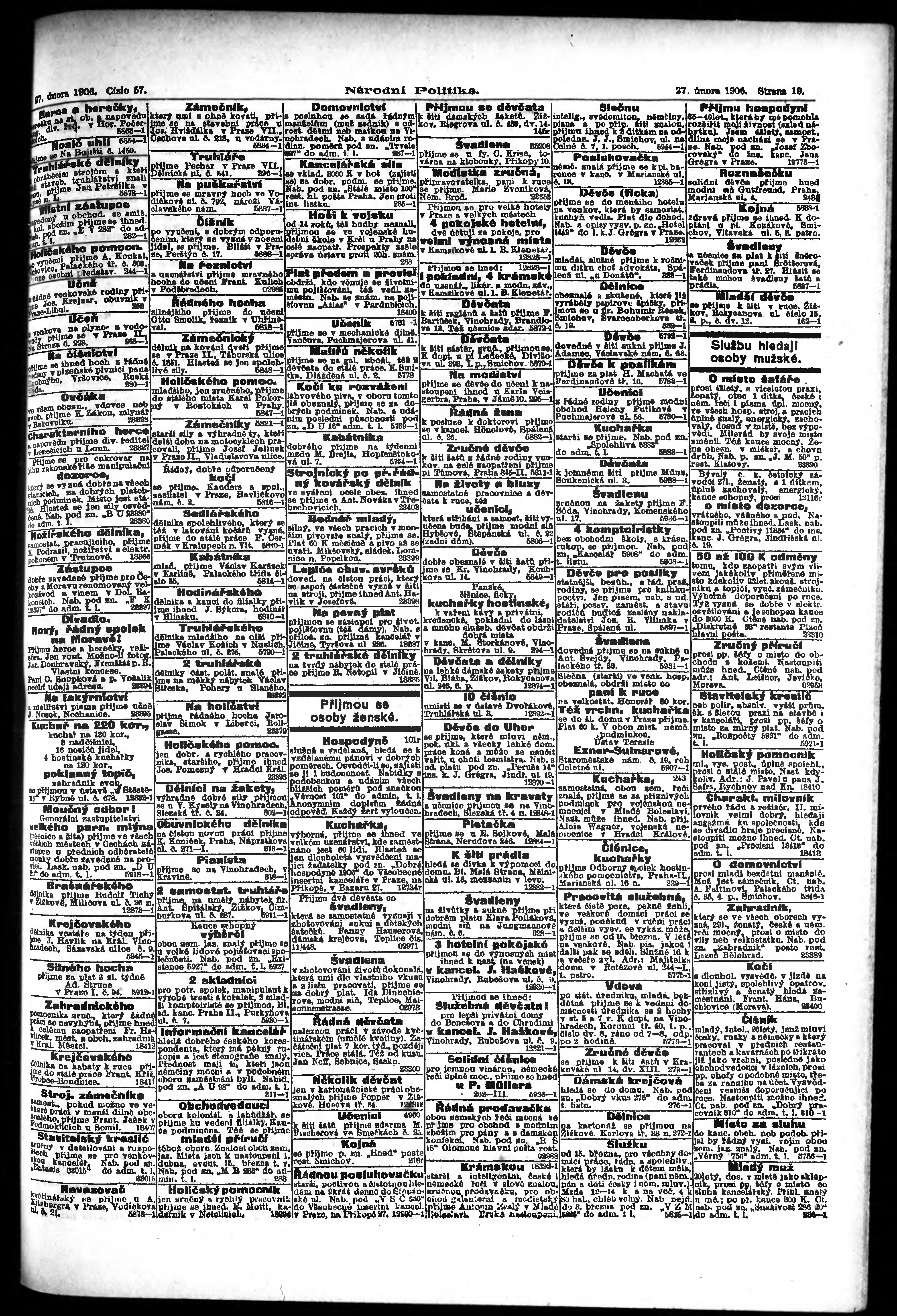 * Datum vydání výtisku: 27.2.1906 Číslo výtisku: 57 Poznámky k výtisku: ranní vydání;