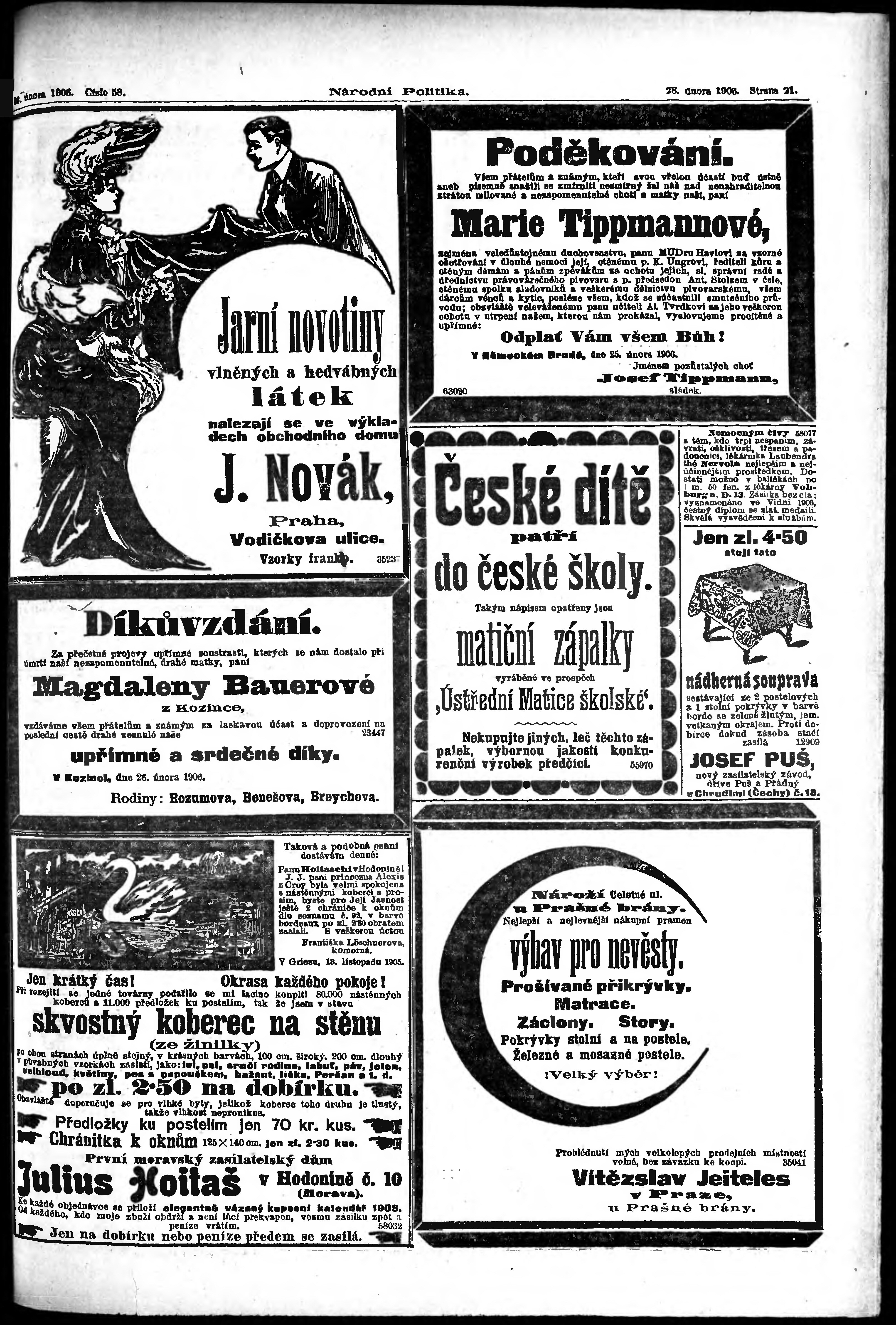 * Datum vydání výtisku: 28.2.1906 Číslo výtisku: 58 Poznámky k výtisku: ranní vydání;